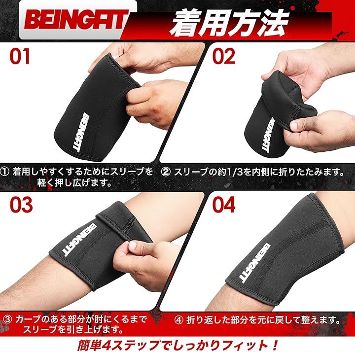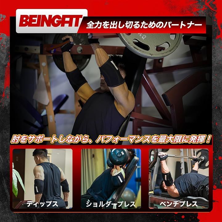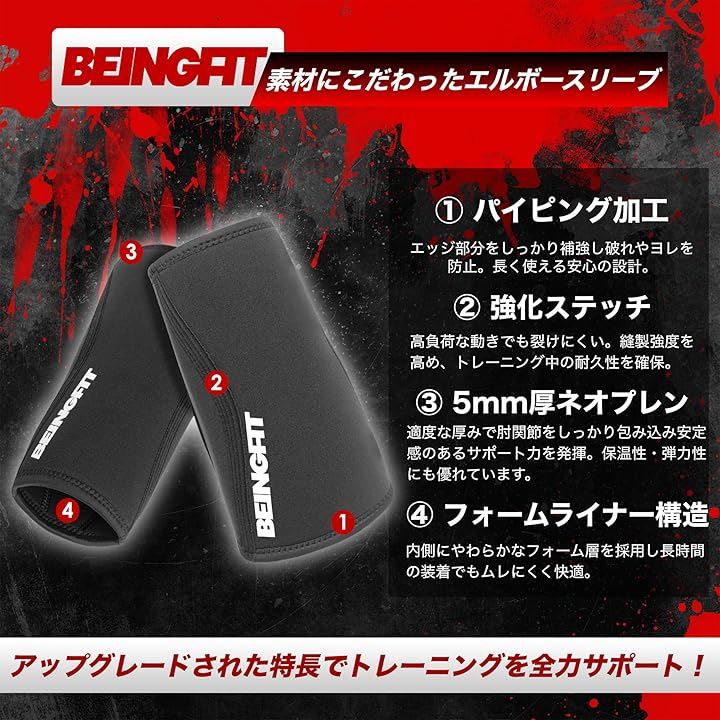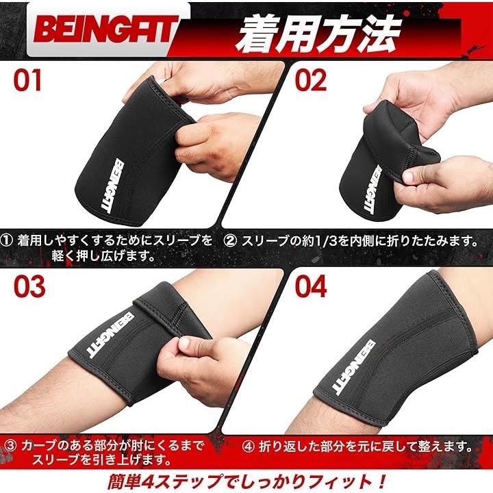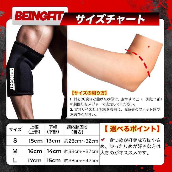 Beingfit エルボースリーブ 筋トレ 肘 サポーター 5mm厚の エルボーサポーター 着脱簡単ショートタイプ 3サイズ展開 S/M/L ウェイトトレーニング ベンチプレス 筋トレグッズ