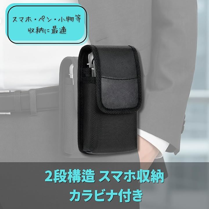 ペンケース ベルト通し 蓋付き 2段構造 スマホ収納 カラビナ