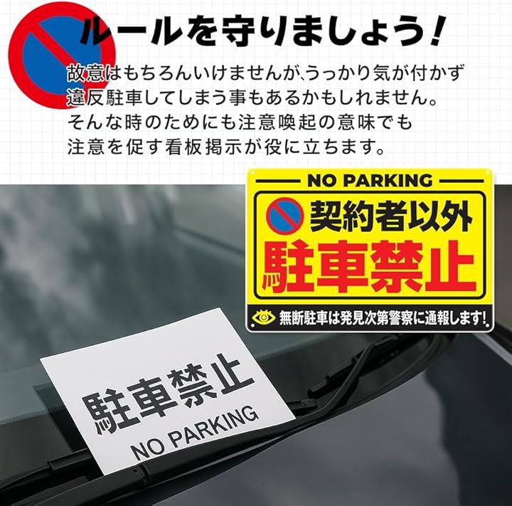 駐車禁止 駐車場 ブリキ 看板 無断 月極駐車場 表示プレート 契約者以外 ステッカー 標識 コーン テープ 私有地 関係者 通り抜け禁止 防犯