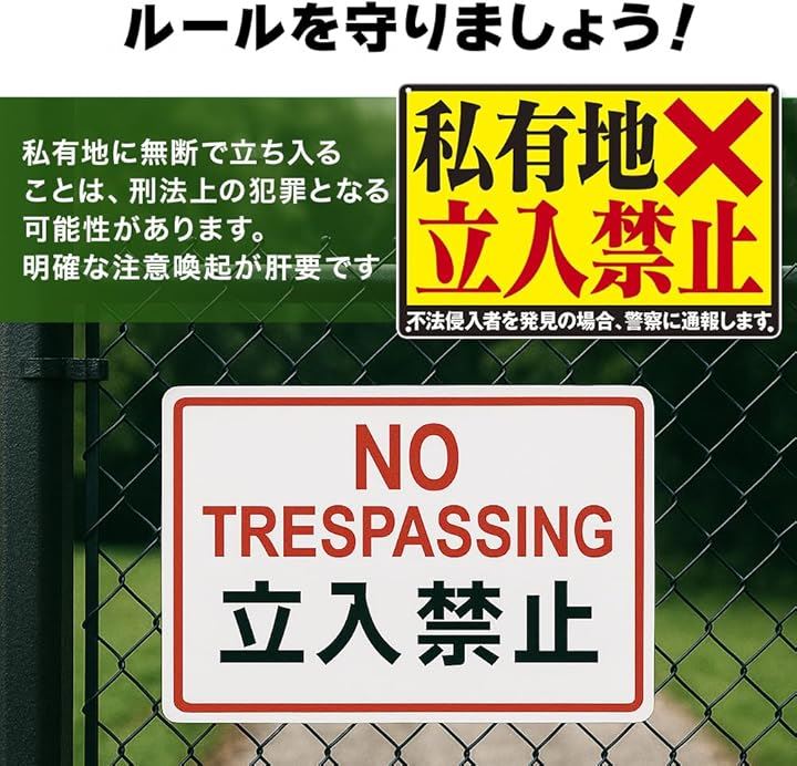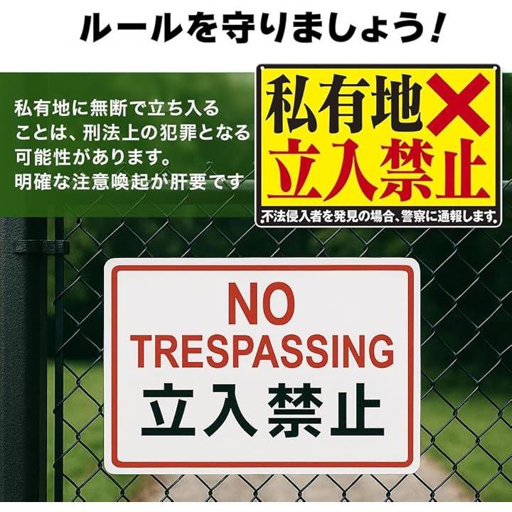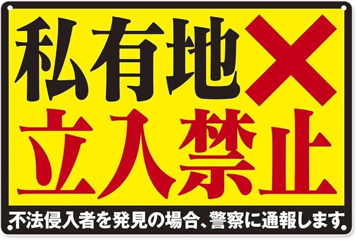 私有地につき立ち入り禁止 ブリキ 看板 プレート ステッカー 標識 立入禁止 関係者以外 テープ ban スタッフオンリー 防犯カメラ 作動中