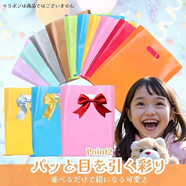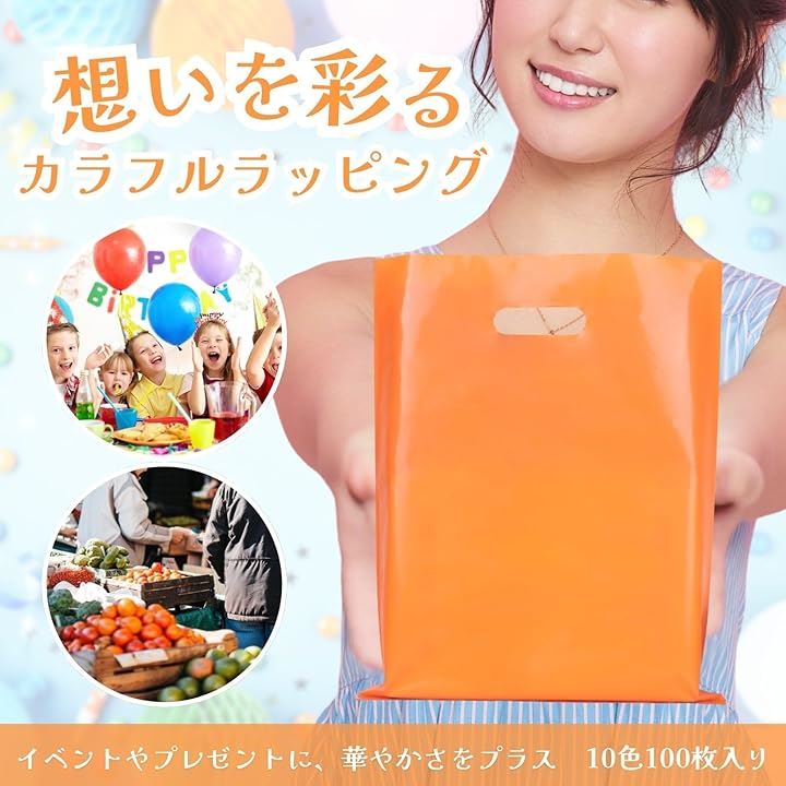 カラフル ビニール袋 手提げ ショップバッグ プレゼント ラッピング 梱包 手提げ袋