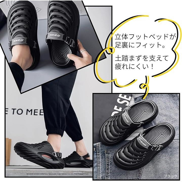 オフィスやガレージ、ちょっとした外出や庭履きにも使える多用途なメンズサンダルです。