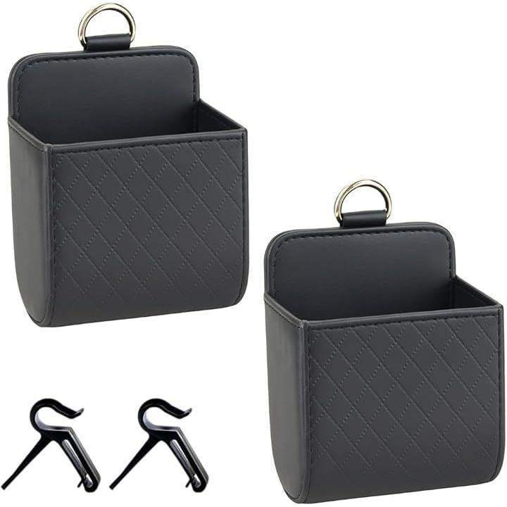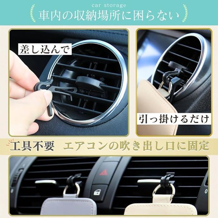 車 小物入れ PUレザー エアコン吹き出口取付式 スマホ&サングラスホルダー
