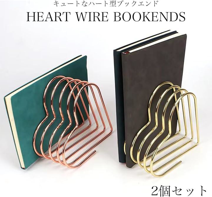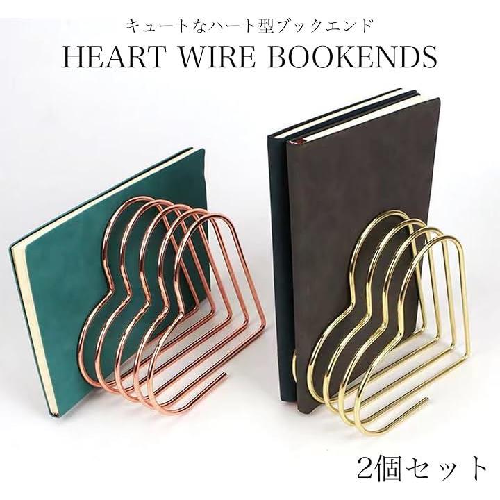 ブックエンド ハート 2個セット デスクトップ 卓上 本棚 メタル ワイヤー 仕切り おしゃれ インテリア 多機能 スタンド 収納 本立て 書類立て 雑誌