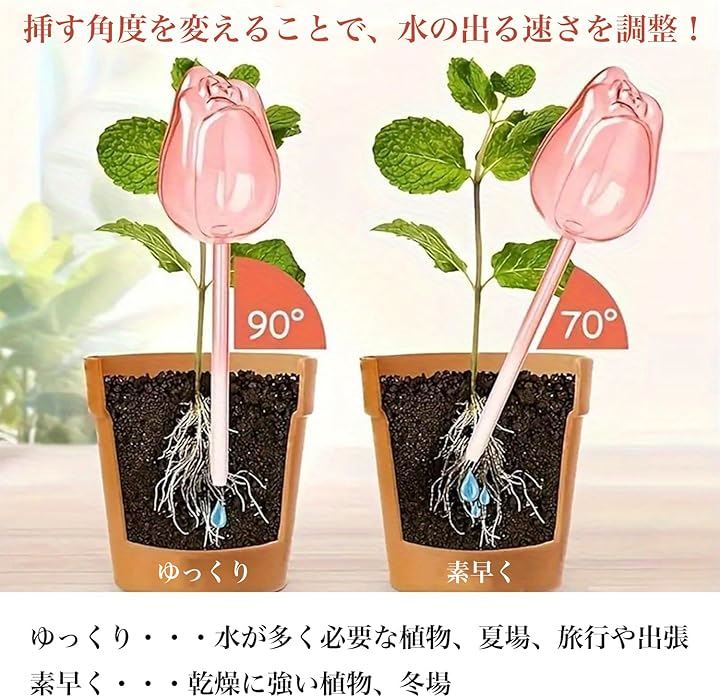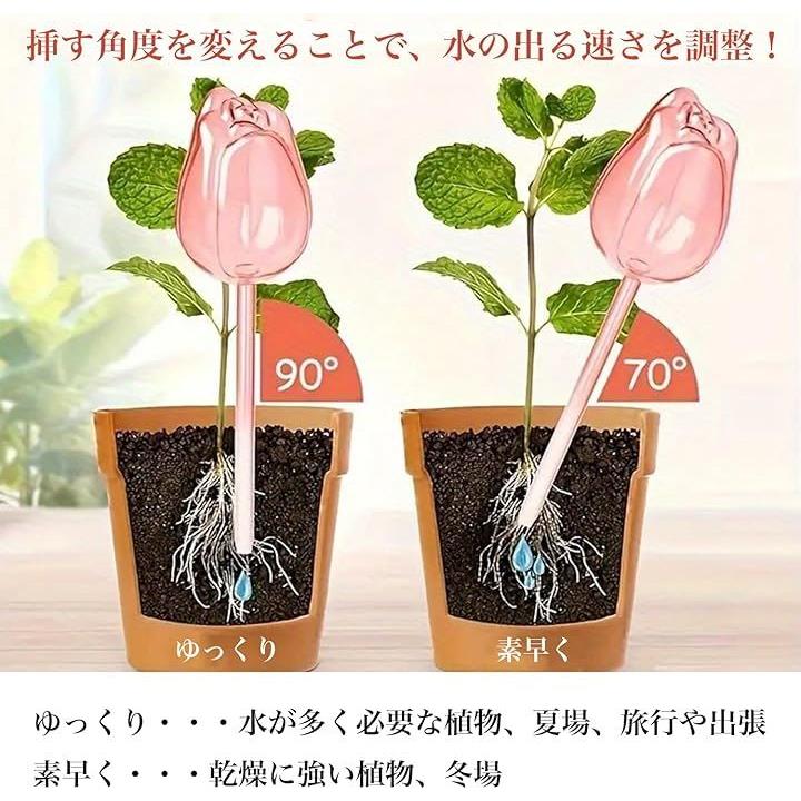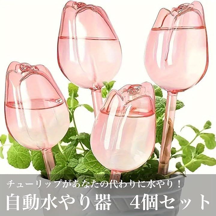 自動水やり器 チューリップ 4個セット 土に挿すだけ お花 植物 水やり機 給水 水やり当番 鉢植え プランター 観葉植物 旅行 出張 留守 室内 ベランダ