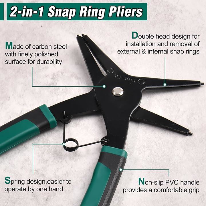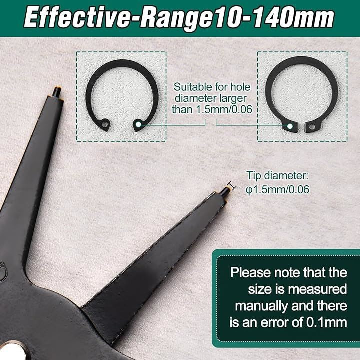 軸穴スナップリングプライヤー 軸穴両用 滑り止めハンドル サークリップ 炭素鋼 2-in-1 デザイン 内外装カードリングの取付けと取り外し 10-140ミリ