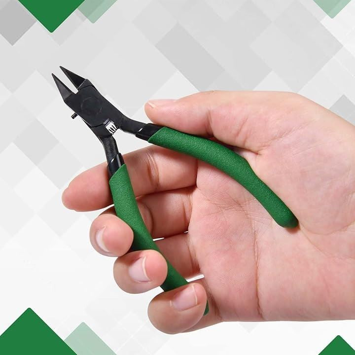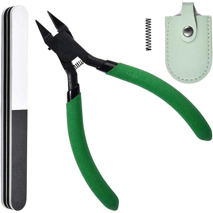 模型用 ニッパー 薄刃 精密 プラスチック専用 ゲートカット 片刃 4.3インチ 55鋼 滑り止め プラモデル用 交換ばね 磨き棒 グリーン保護カバー 付き 極薄刃 プラモデル用工具 DIY手作り