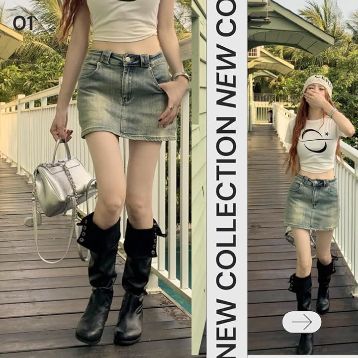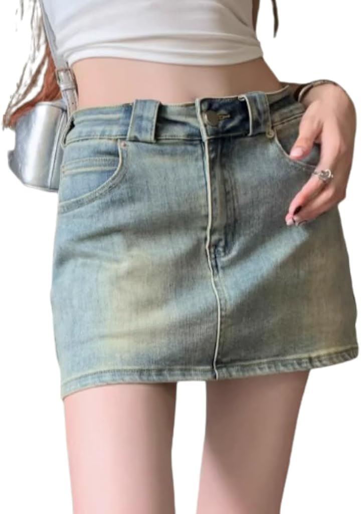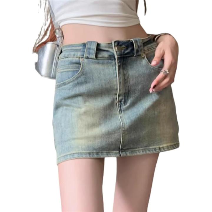 デニムミニスカート レディース ハイウエスト ストリート風 カジュアル ヴィンテージ加工 ミニ丈 脚長見えスカート 韓国ファッション 着回しやすい スリムシルエット
