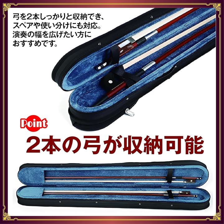 弓ケース 弦楽器共用 2本収納 バイオリン ビオラ チェロ対応 ストラップ付
