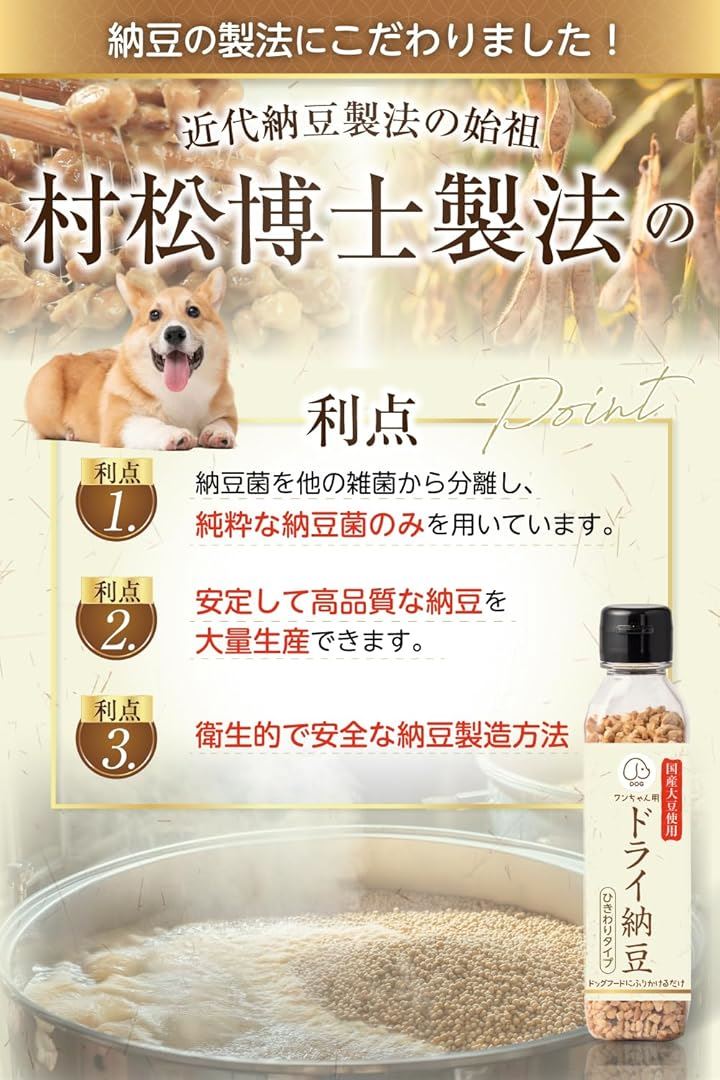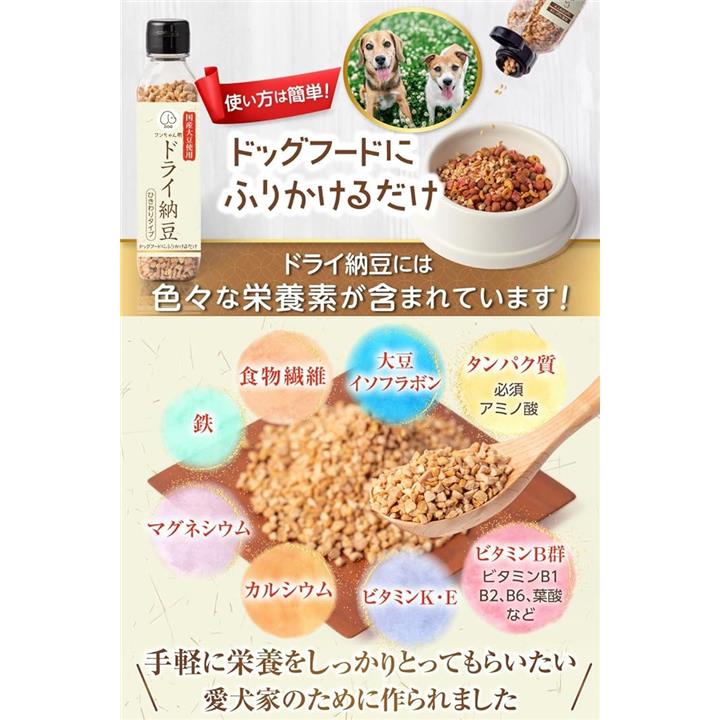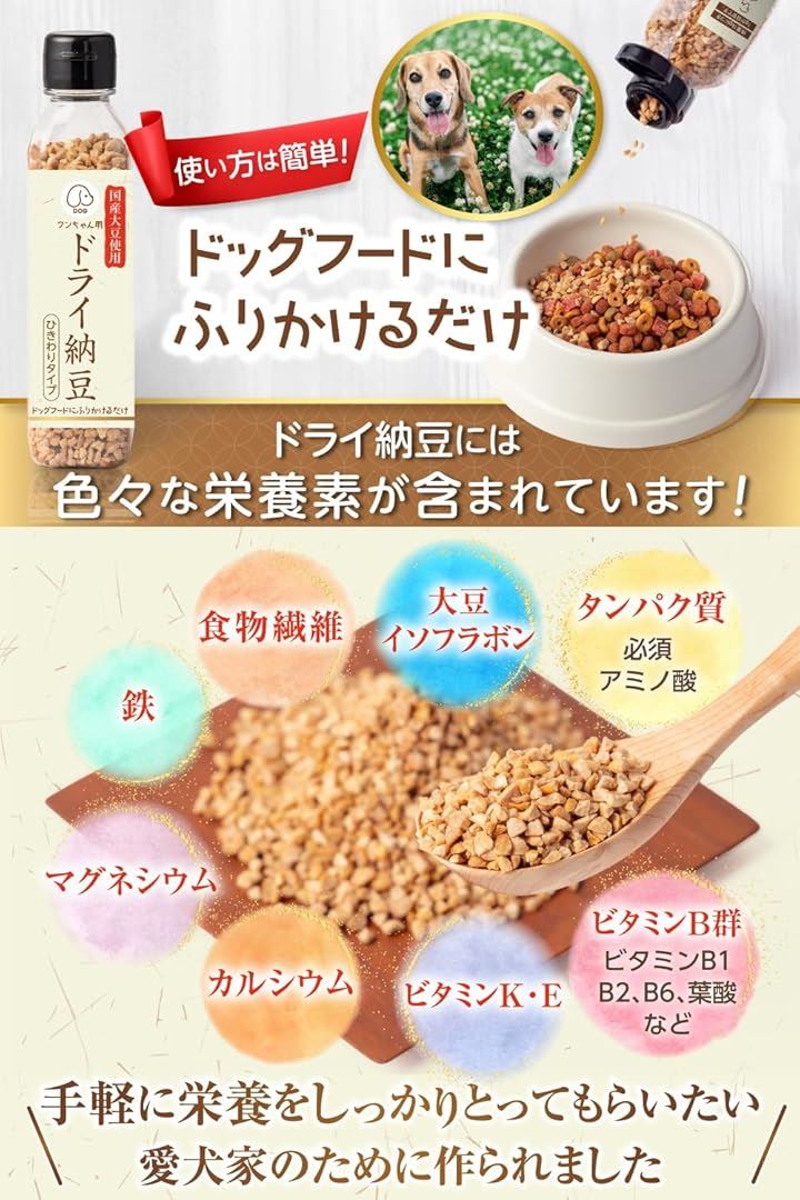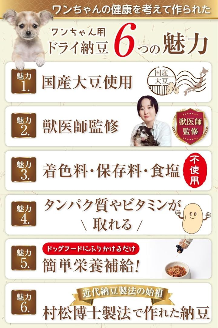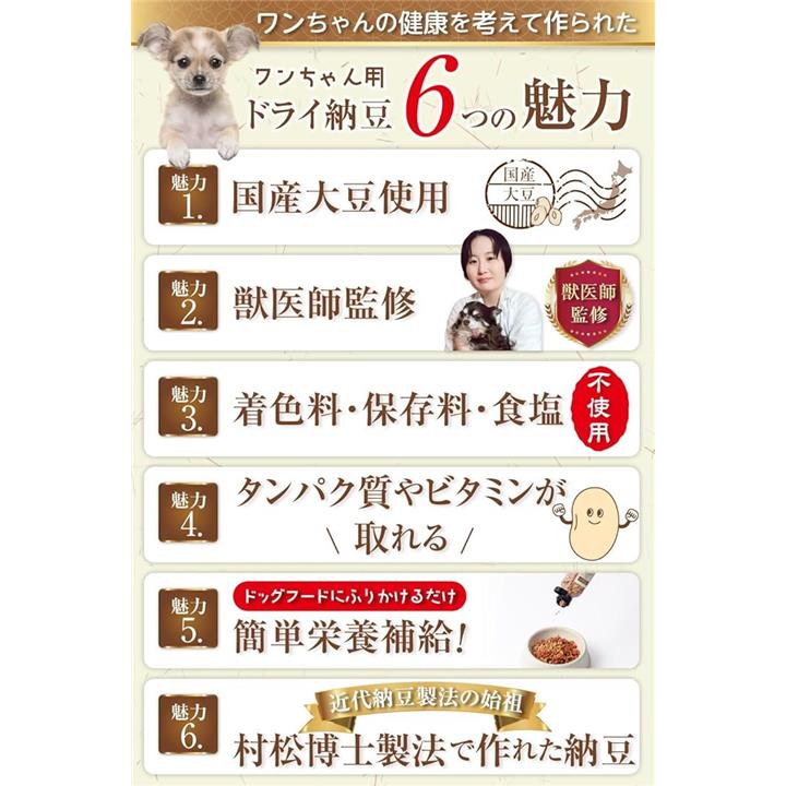 獣医師監修 国産 犬 ふりかけ ドッグフードにふりかけるだけで純粋な納豆菌がとれる 犬用ドライ納豆 65g 着色料・保存料・食塩・砂糖不使用
