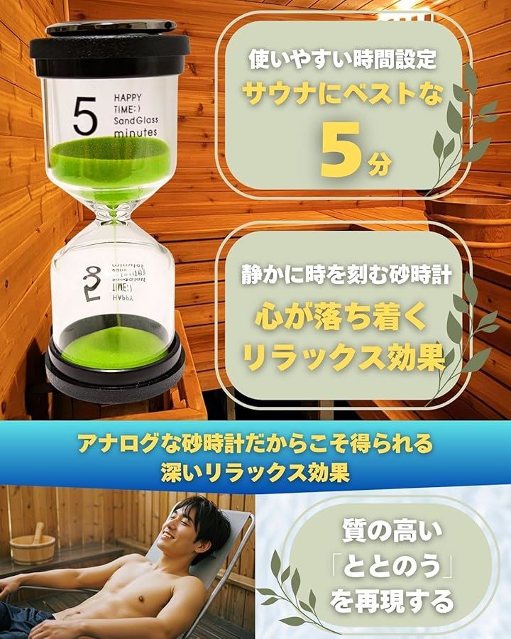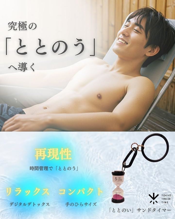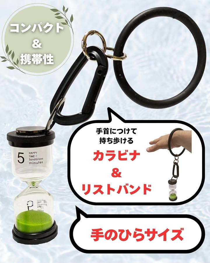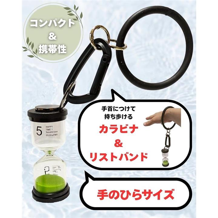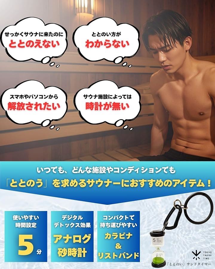 ととのいサンドタイマー サウナ 砂時計 5分計 カラビナ&リストバンド付き 防水 耐熱ガラス 軽量 コンパクト 手のひらサイズ ととのう リラックス 睡眠の質向上 美肌効果 温泉 銭湯 お風呂