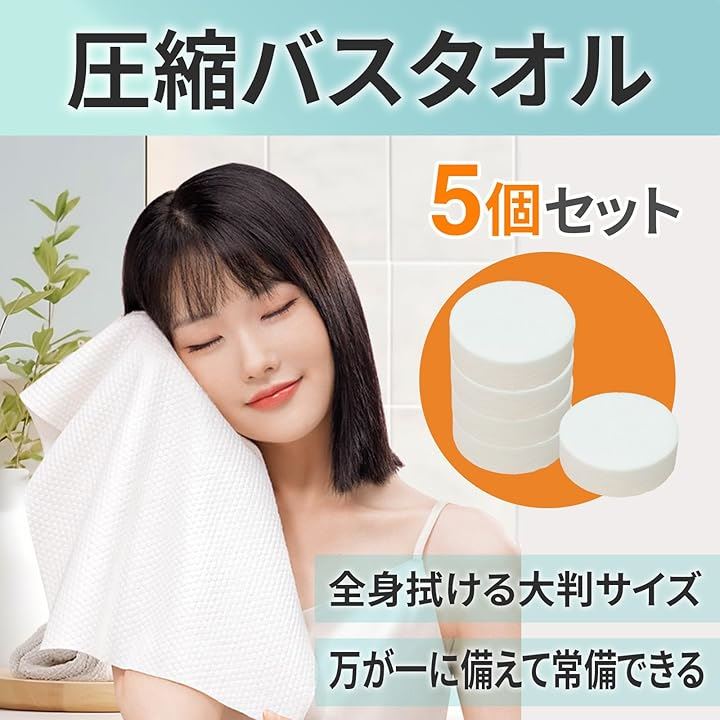 圧縮タオル バスタオル 大判 5個 防災 使い捨て 避難 旅行 アウトドア 軽量 コンパクト
