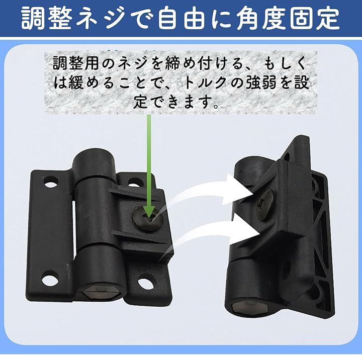 フラットトルクヒンジ ストップ蝶番 プラスチック製 軽量 錆びない トルク調整可能 扉 蓋 固定 DIY 家具 修理 リフォーム 10個セット