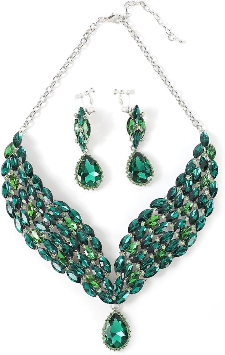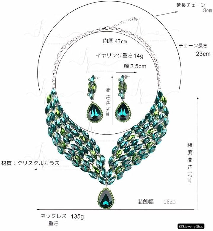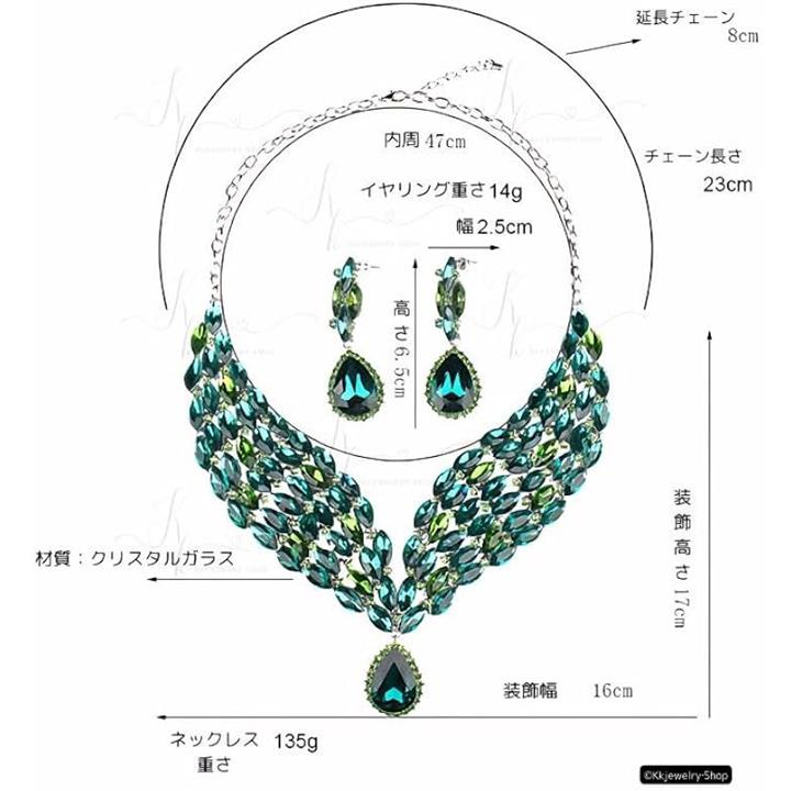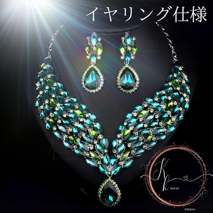 KK Solis ネックレス イヤリングセット ピアス ブリーズクリスタル ドロップ型 モチーフ 大ぶり 演奏会 発表会 ベリーダンス 社交ダンス 首飾り ビジュ 高見え ショーアクセサリー ネックレス・イヤリングセット
