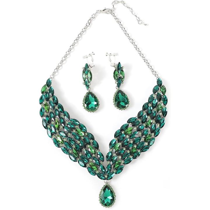 スタイル名: イヤリングセット・ネックレス/グリーン