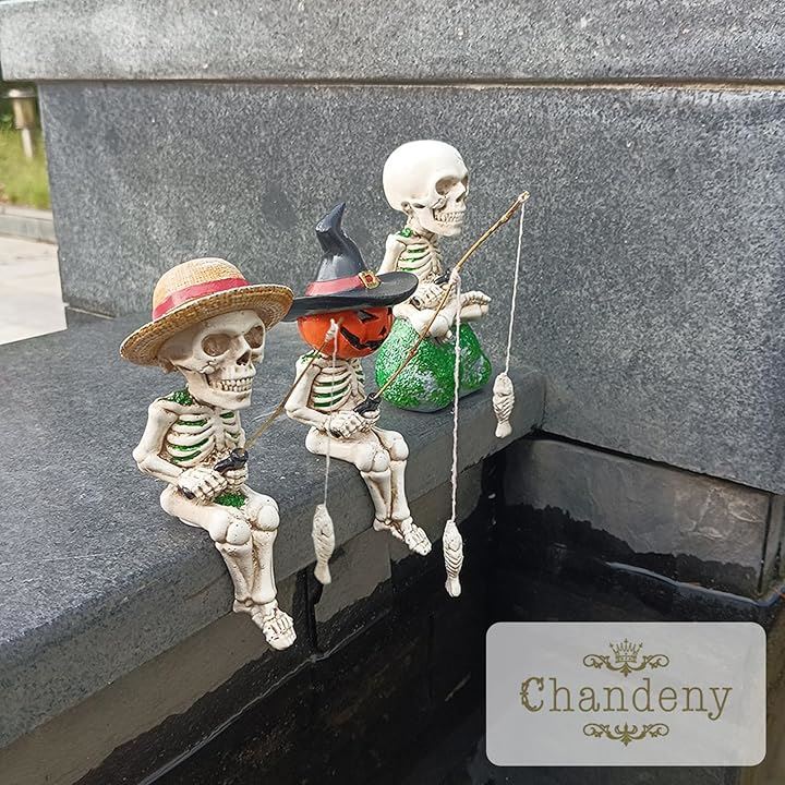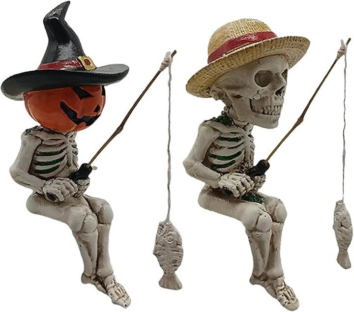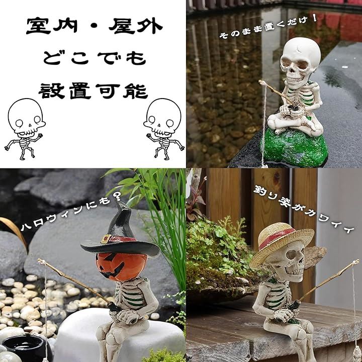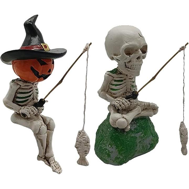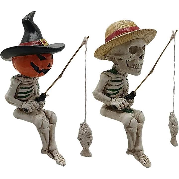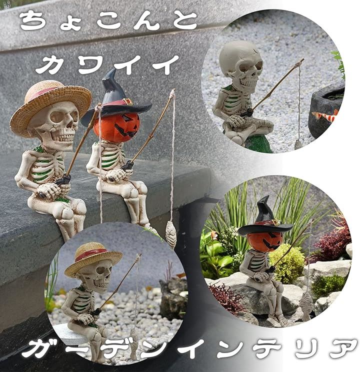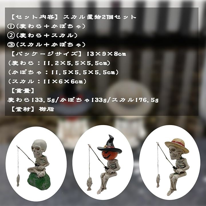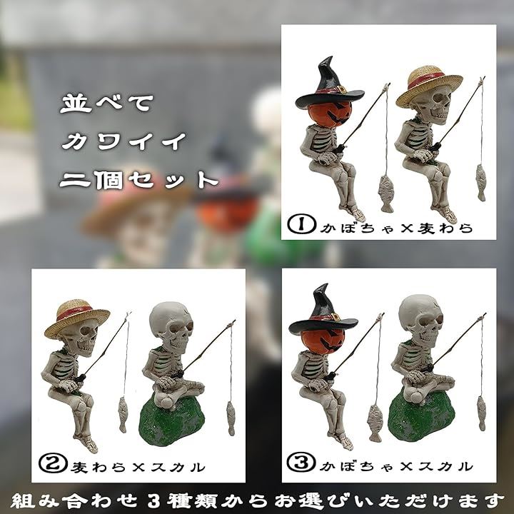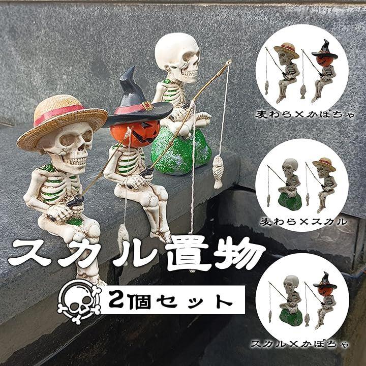 釣り姿 スカル 置物 2個セット 3種類 ガイコツ 骸骨 パンプキン 麦わら ハロウィン インテリア