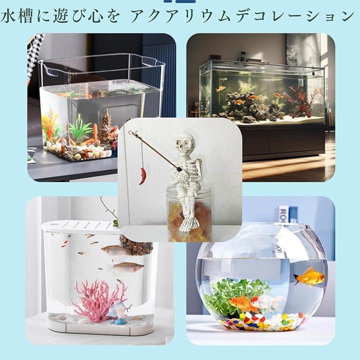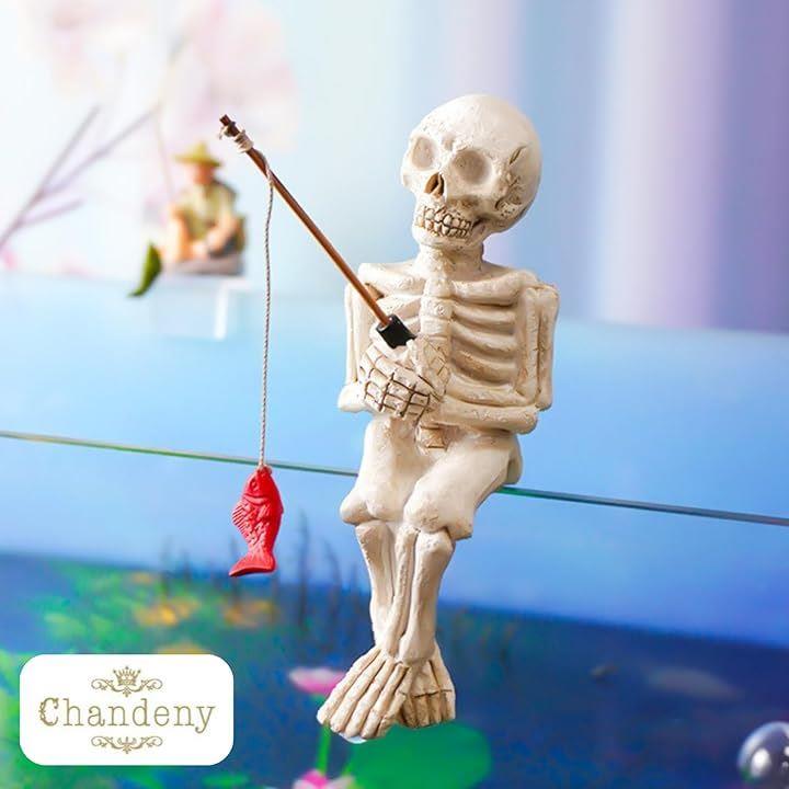 水槽 縁飾り 釣り スカル 骸骨 ガイコツ 置物 装飾 オーナメント ゴシック ハロウィン 樹脂製