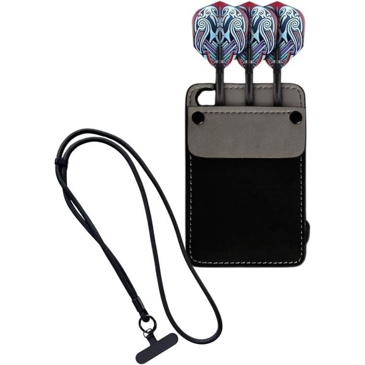 首掛けダーツケース PU レザーケース マイダーツ 保管 収納 ナイロン製 ネックストラップ付き