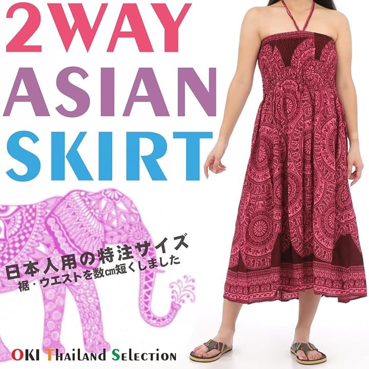 スカート ワンピース アジアン エスニック 2WAY レーヨン レディース P1808