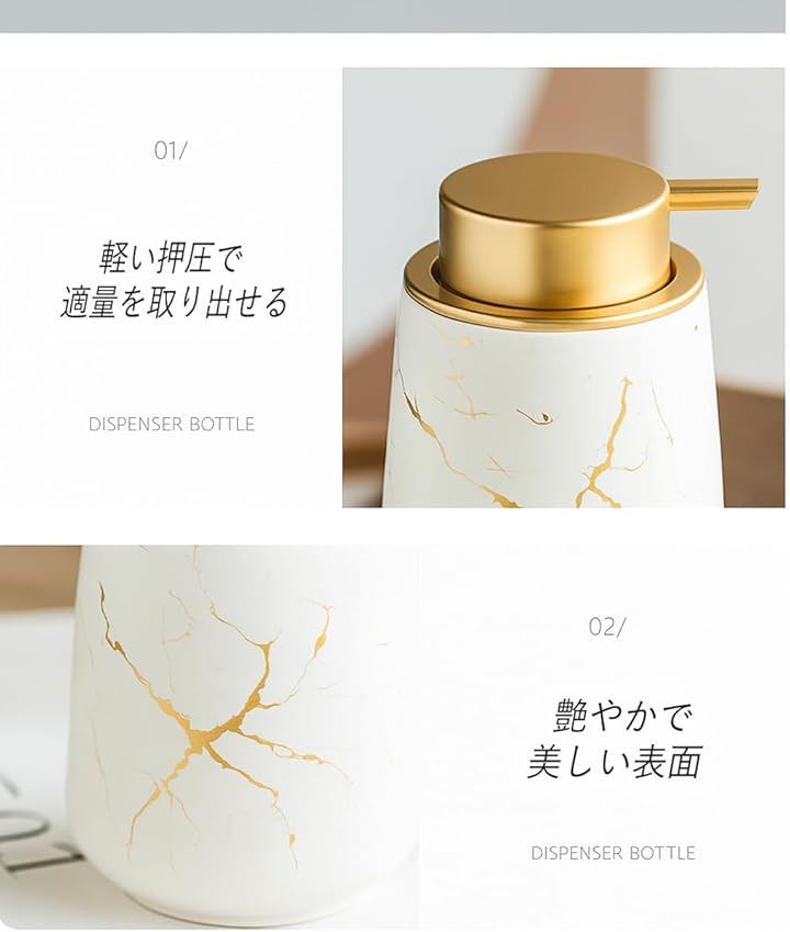 ハンドソープ ディスペンサー シャンプーボトル 大理石 おしゃれ ポンプ式 詰め替え 容器400ml