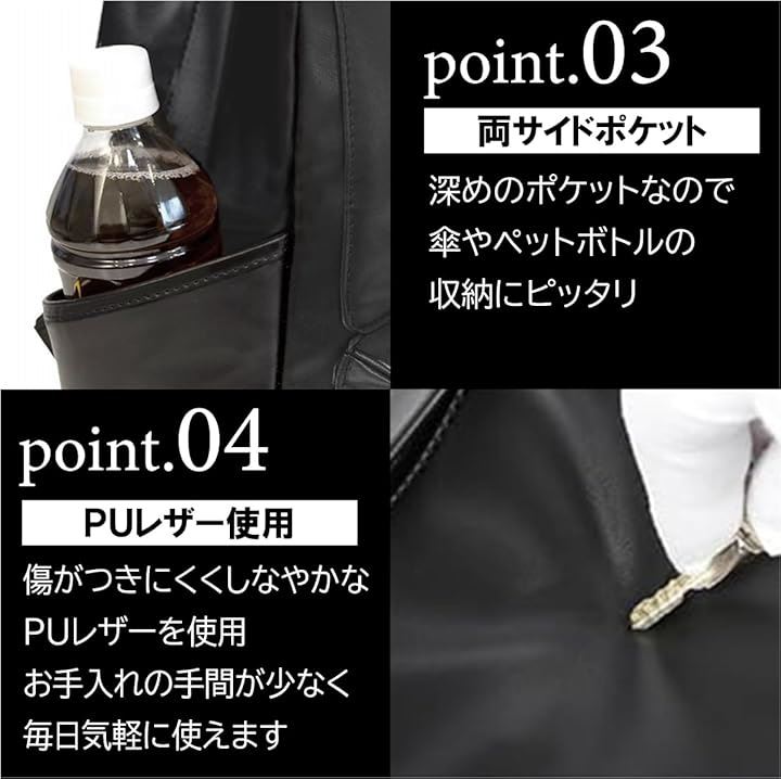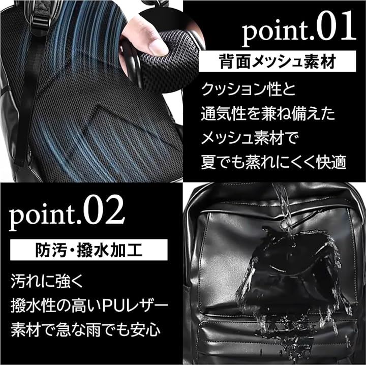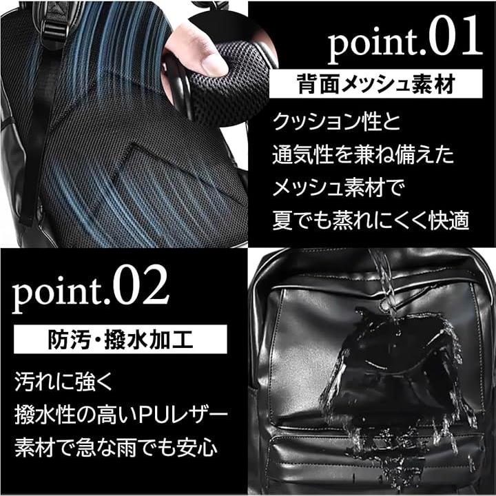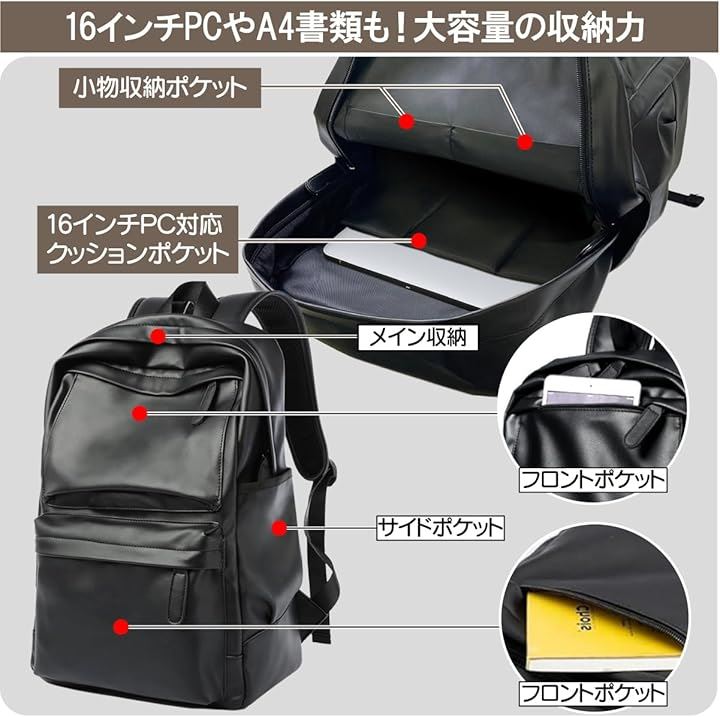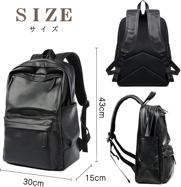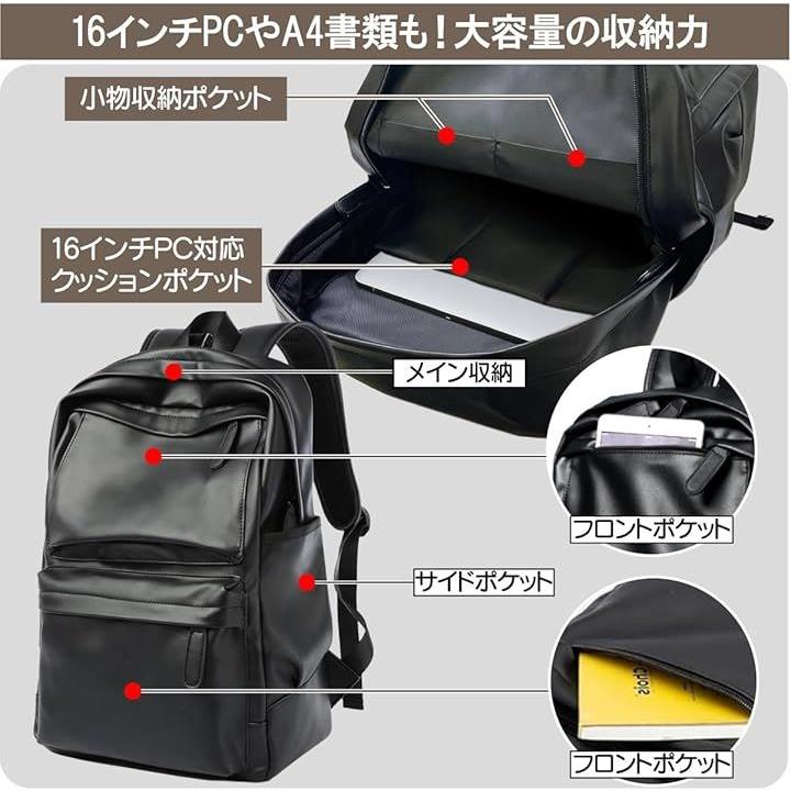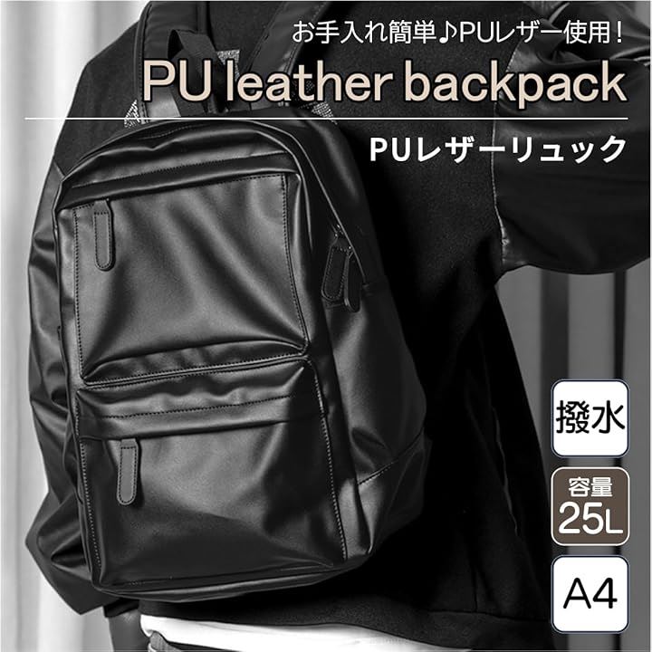 PUレザービジネスリュック 男女兼用 25L 軽量 通勤 通学