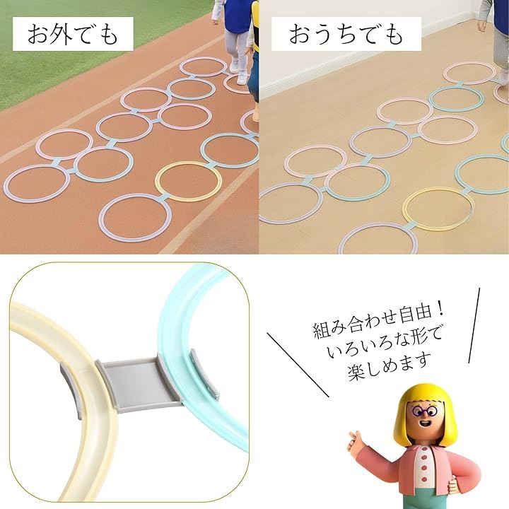 ケンケンパ けんけんぱ リング 練習リング 子供 運動 屋内 屋外 知育 選べる トレーニング フープ パステルカラー 収納袋付き