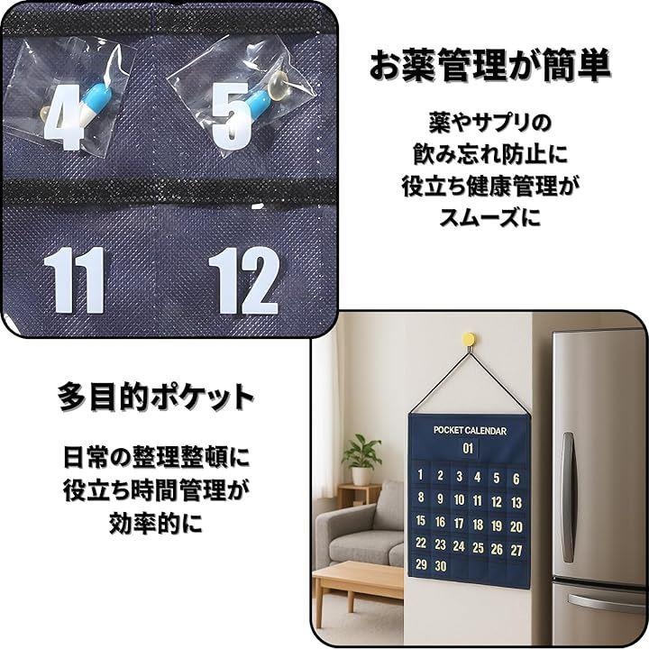 お薬カレンダー 壁掛け 1か月 ポケット付き