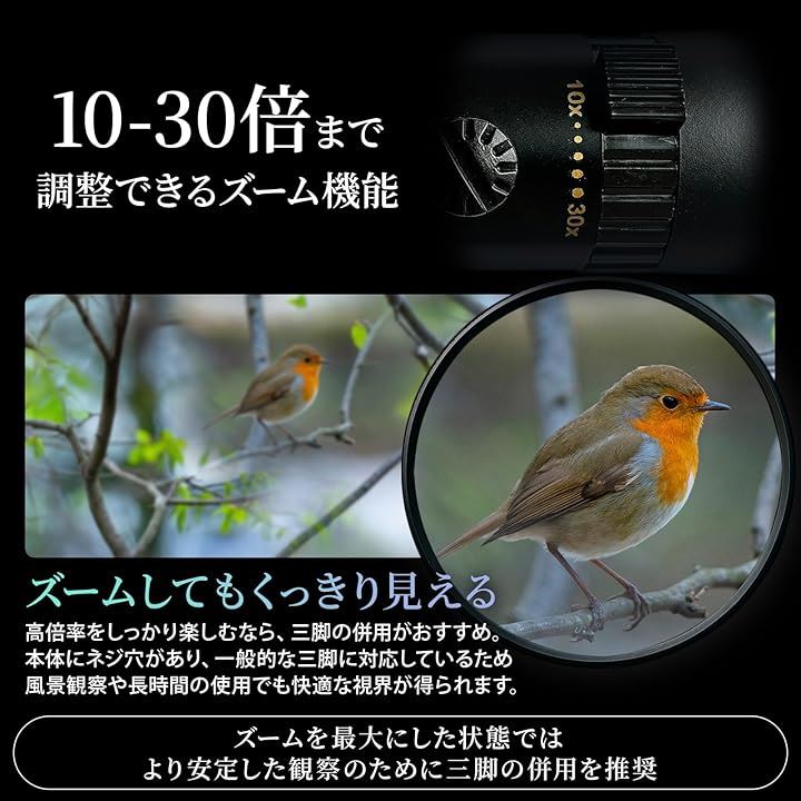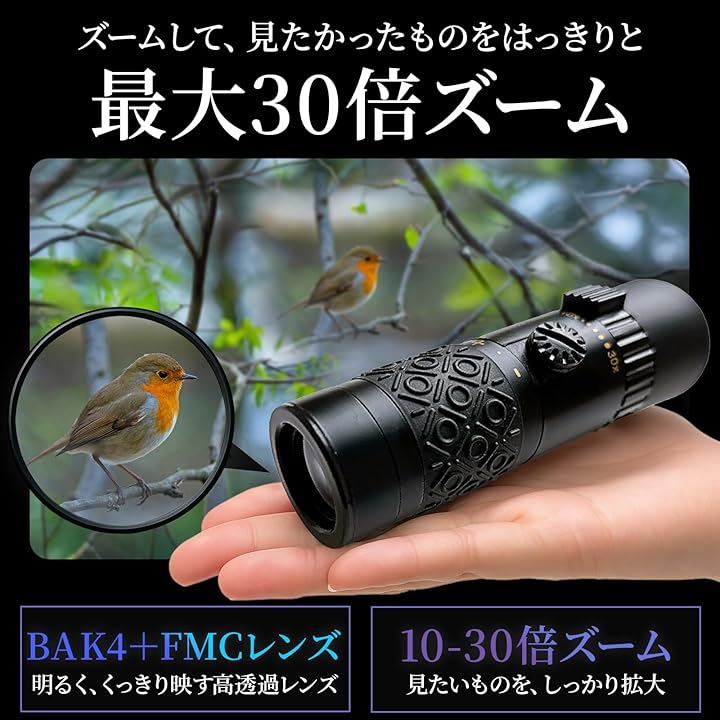 単眼鏡 高倍率 BAK4+FMCレンズ搭載 10-30倍 110g 専用ケース ストラップ付 小型 旅行 ライブ コンサート スポーツ観戦用