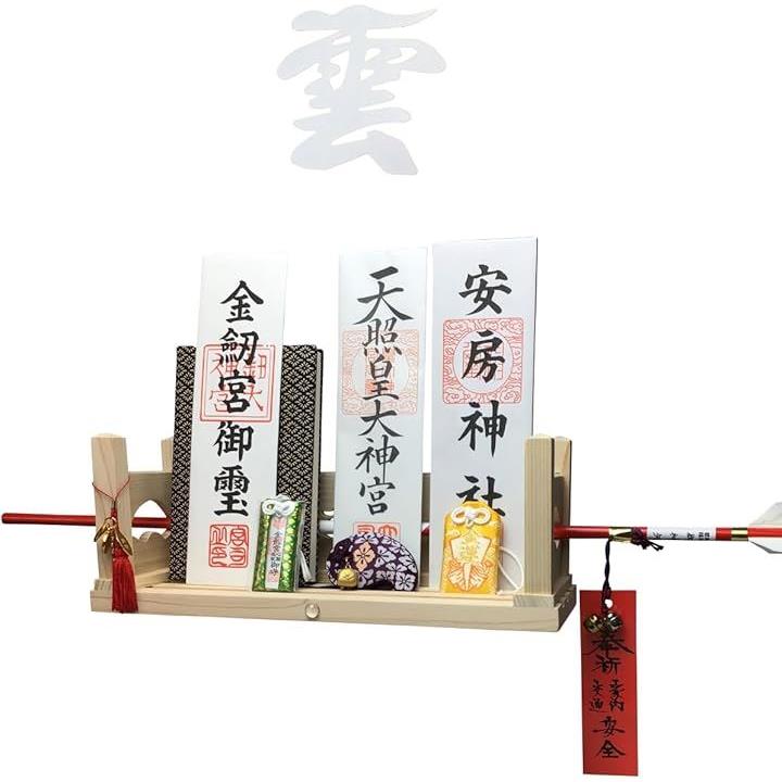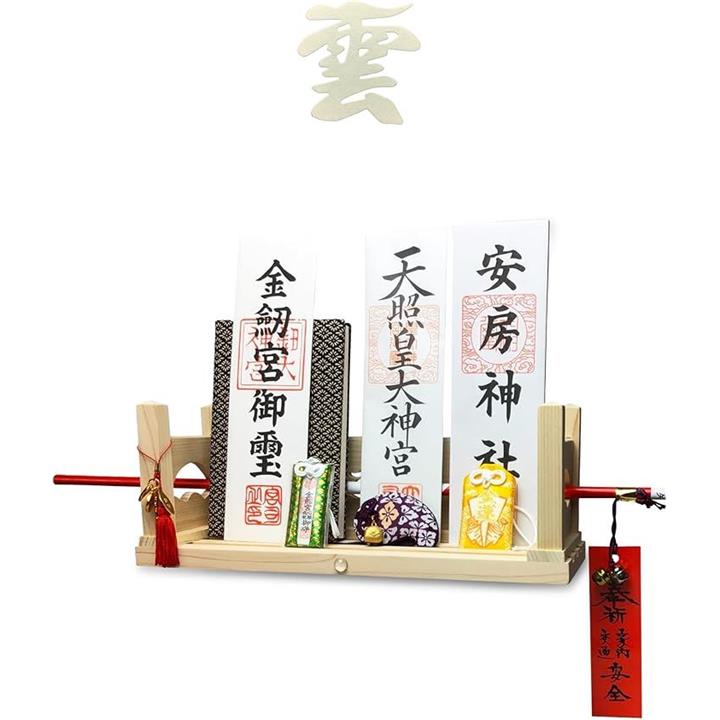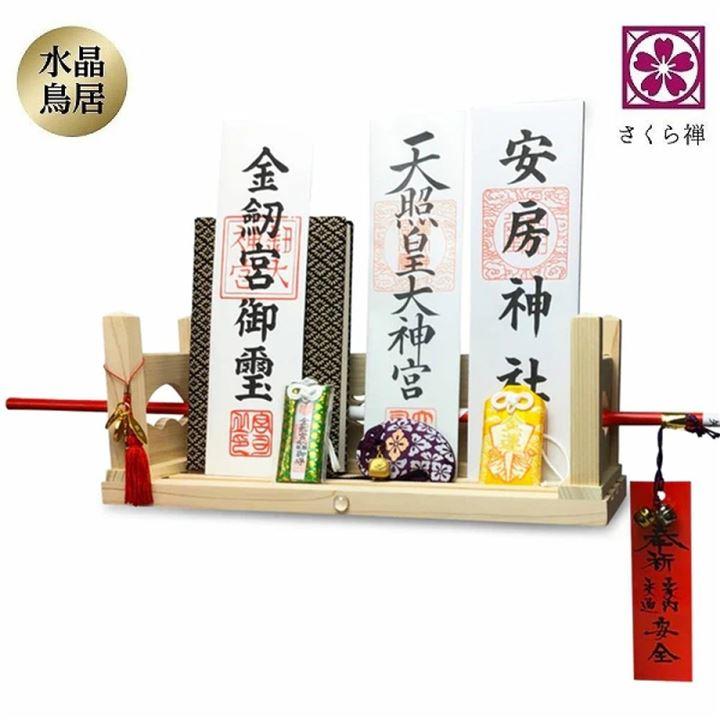神棚 壁掛け モダン 彩雲 水晶 鳥居 国産 ひのき 檜 製 装飾 お札立て 棚板