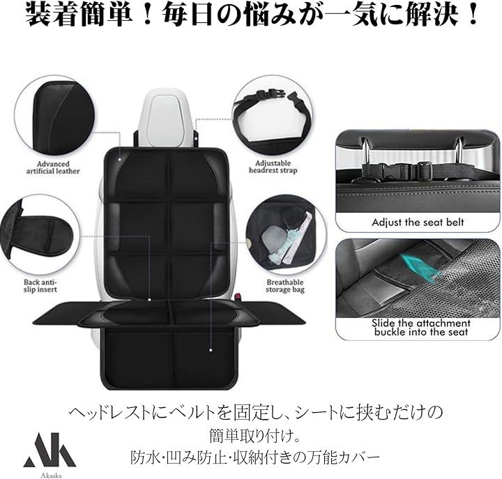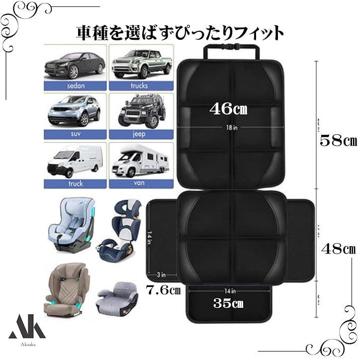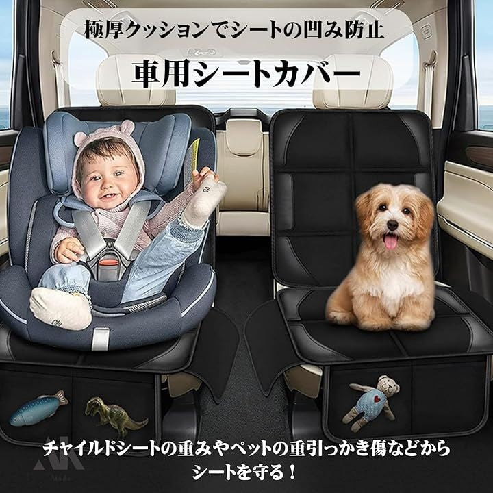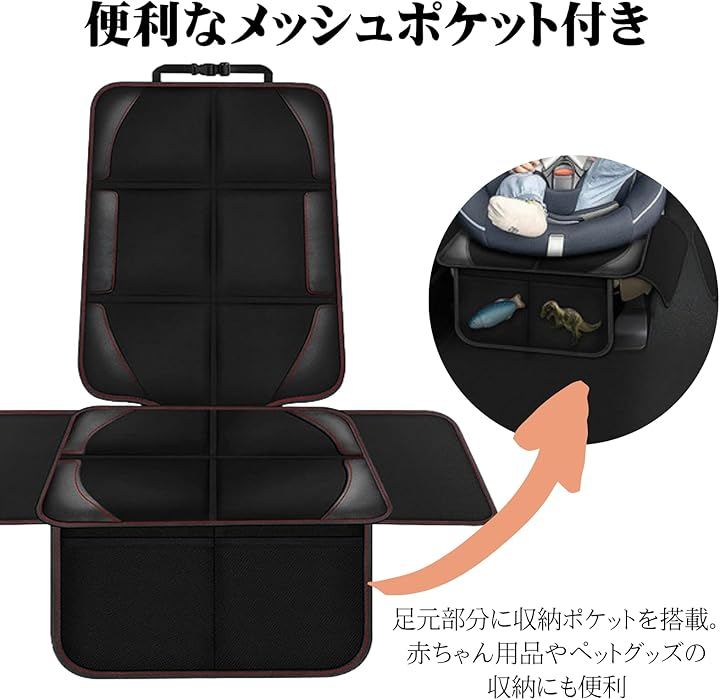 チャイルドシート用 保護マット 車用 シートカバー 極厚クッション 防水 汚れ防止 収納ポケット付き