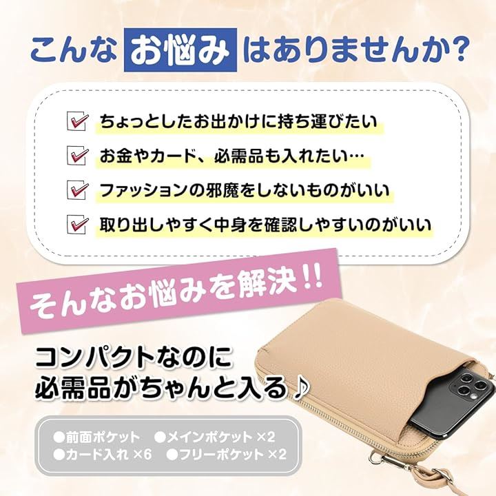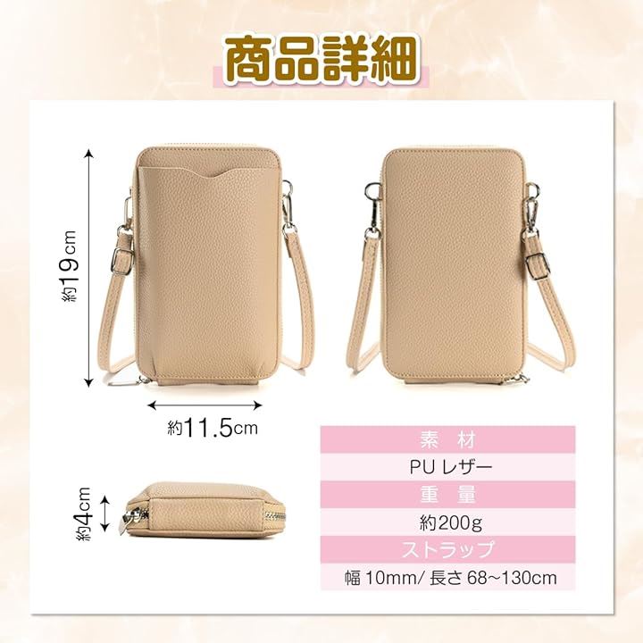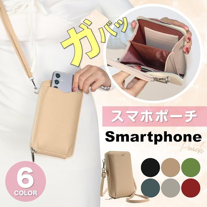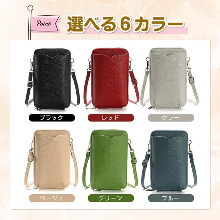 スマホポーチ 縦型 ショルダーバッグ レディース スマホポシェット 携帯ポーチ 斜め掛け シンプル レザー調 軽量 お出かけ用