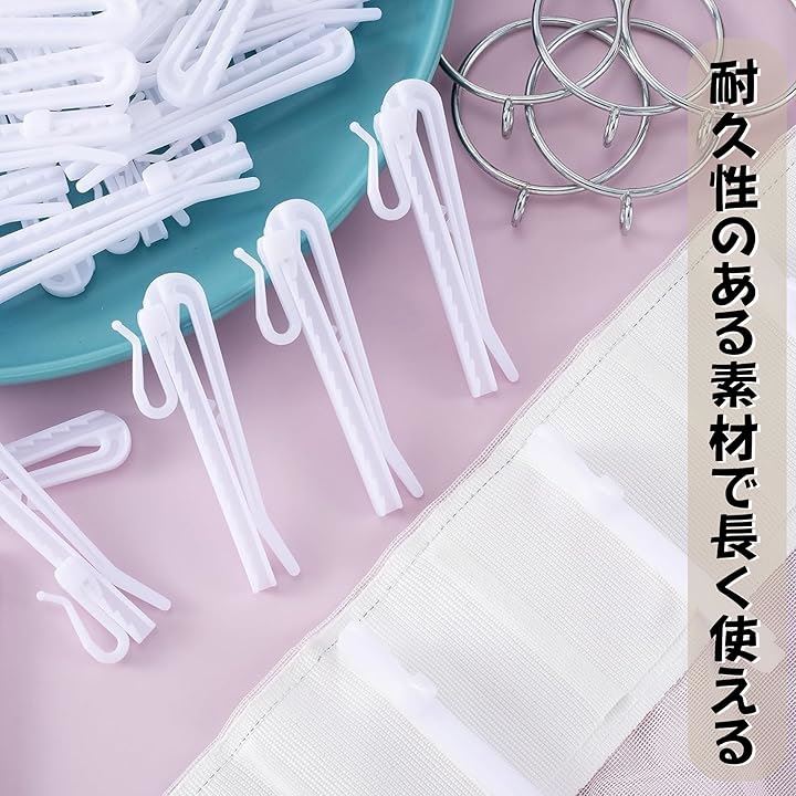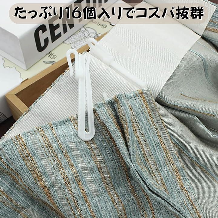 カーテンフック 16個セット ホワイト 軽量タイプ カーテンレール対応 工具不要 簡単装着 家庭 業務