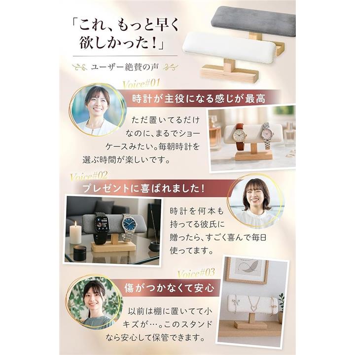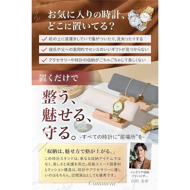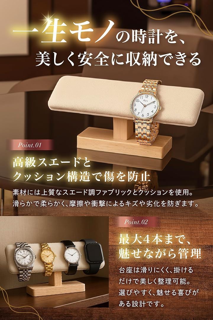 腕時計 スタンド 置き ディスプレイ 収納 木製 ホルダー 台座 ケース クッション 掛け