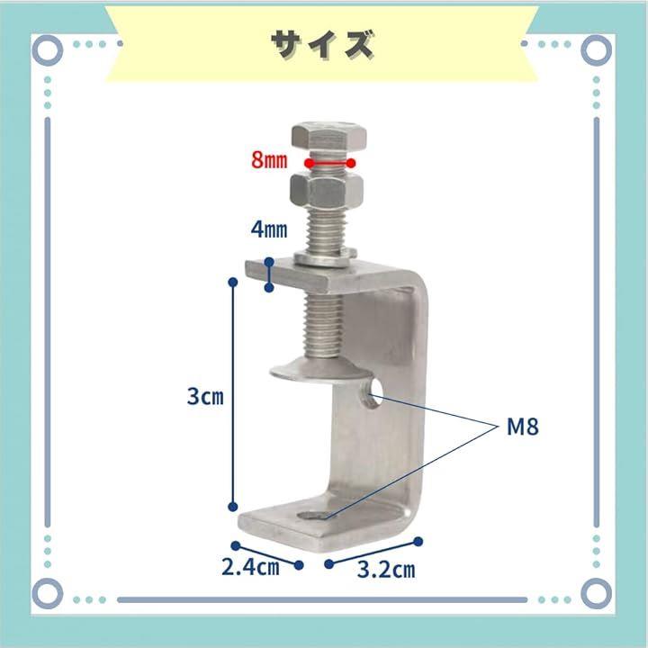 c型クランプ 固定金具 万力 コの字 ミニ 小型 ブラケット シルバー 4個セット