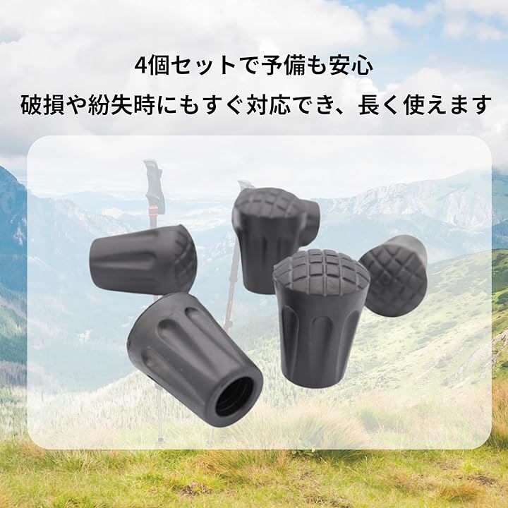 ストックキャップ 4個セット 取り替え 軽量 ゴムキャップ 滑り止め 耐磨耗 登山 汎用タイプ