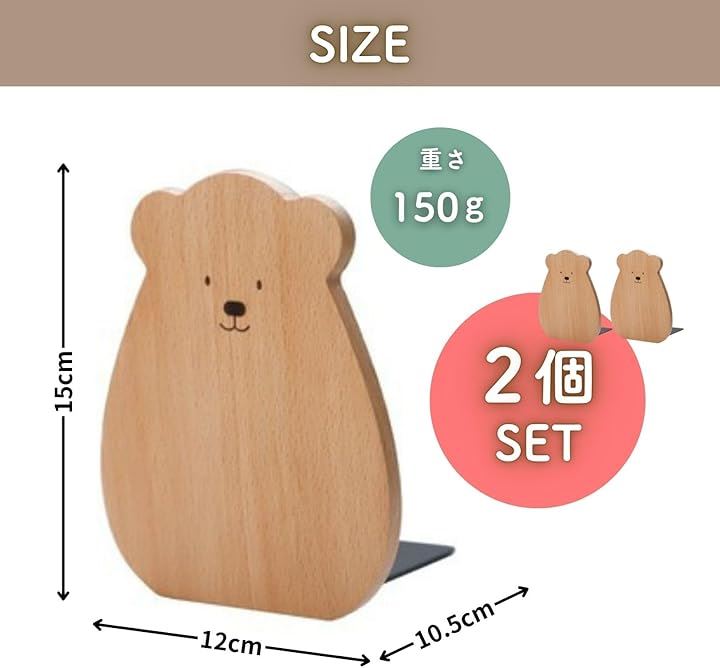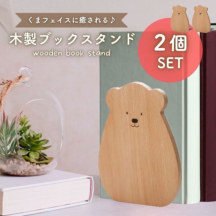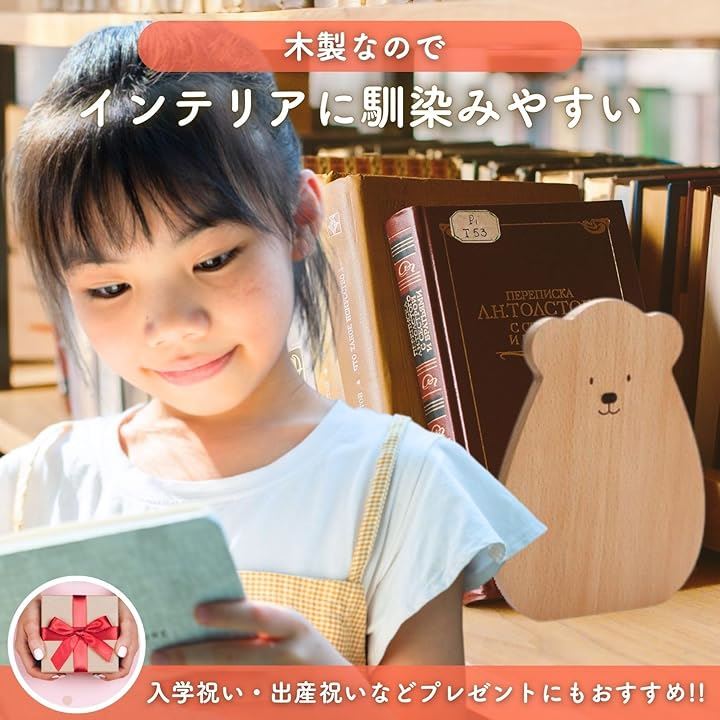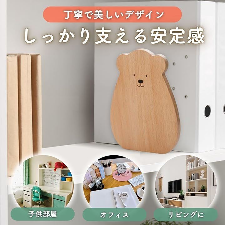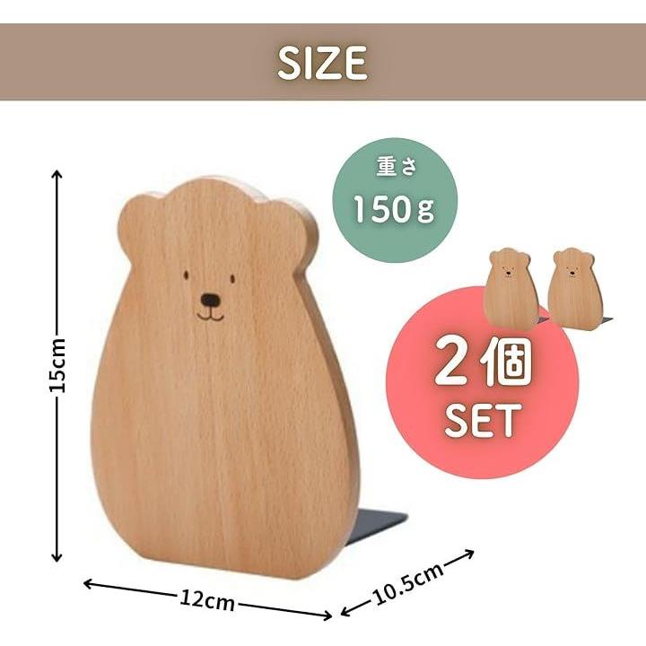 ブックスタンド くま ブックエンド 本立て 木製 木目 ファイル 漫画 雑誌 収納 倒れない