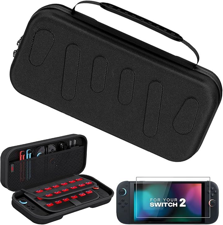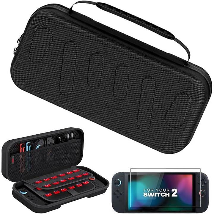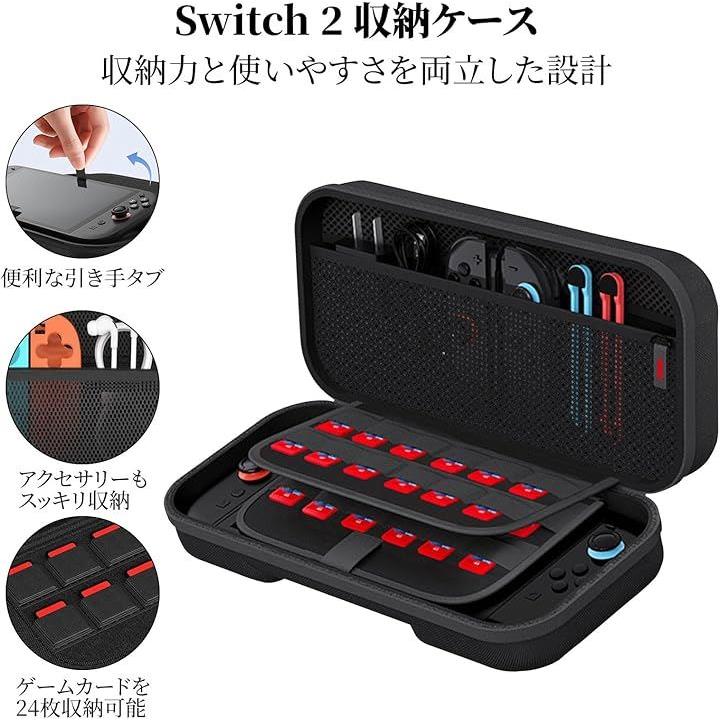 Switch 2 対応ケース スイッチ2 収納バッグ 大容量 ナイロン素 耐衝撃 防塵 キズ防止 持ち運び便利 ゲームカード24枚収納 保護スフィルム1枚付き