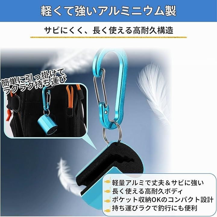 手のひらに収まるサイズ感でポケットや小物ポーチに収納しても邪魔にならず、釣り場への移動時も快適です。