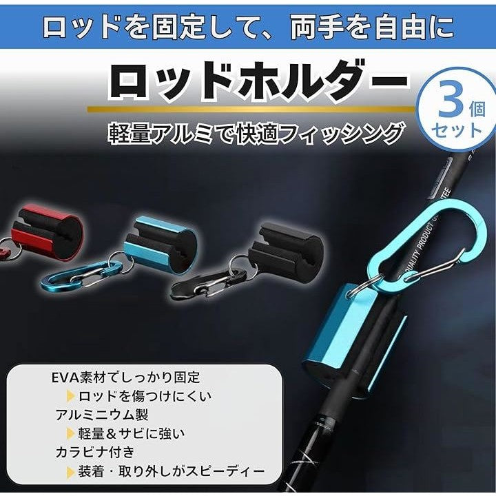 「仕様詳細」〇セット内容:ロッドホルダー3個セット(カラビナ付き)。