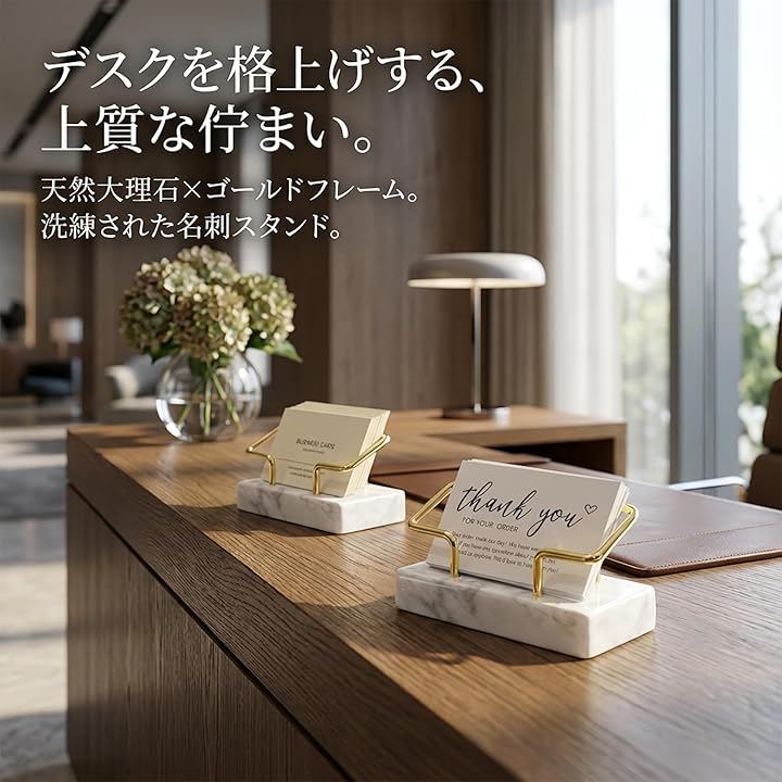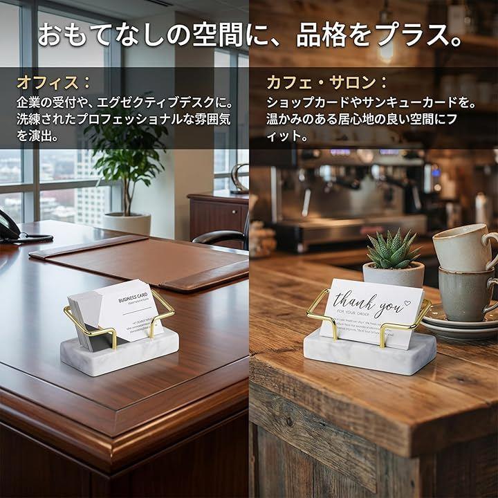 名刺スタンド 2個セット 天然大理石 デスク カード ホルダー ディスプレイ デスクトップ 卓上 収納 机 ショップカード 事務用品 オフィス 店舗 受付 レストラン カフェ