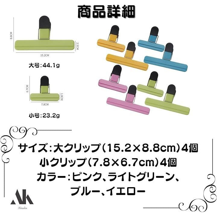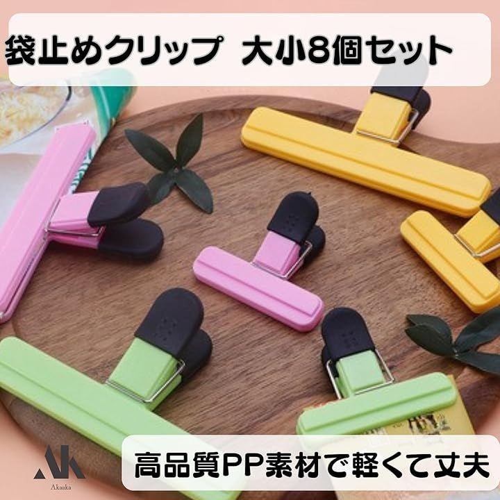 袋止めクリップ 食品保存袋クリップ 強力密封 キッチン便利グッズ 防湿 大小8個セット