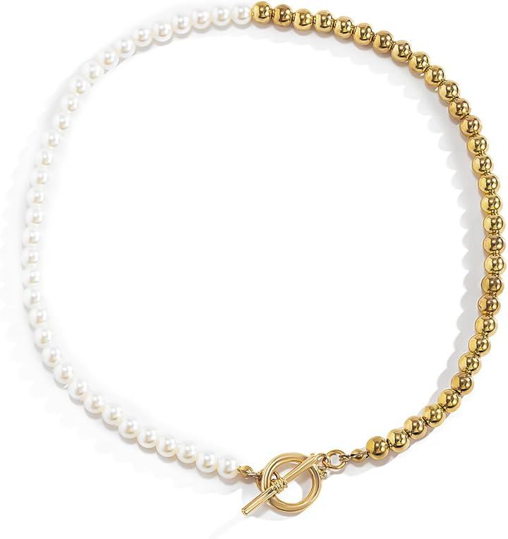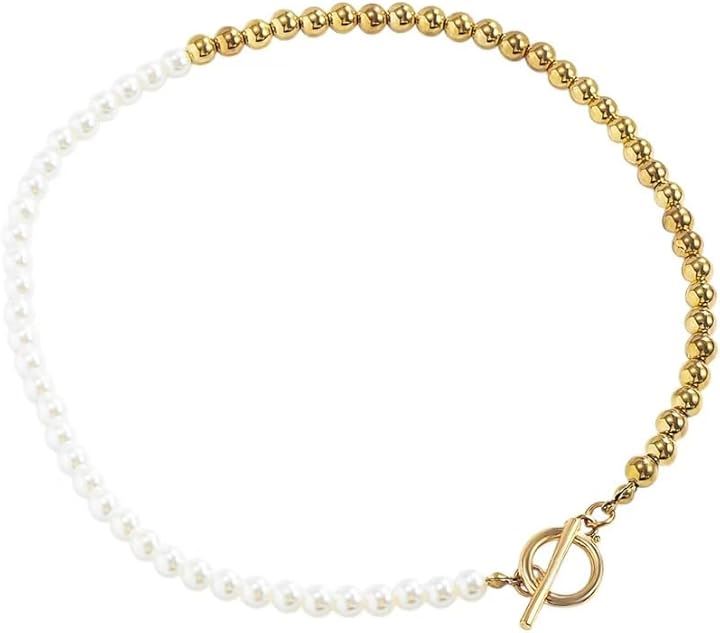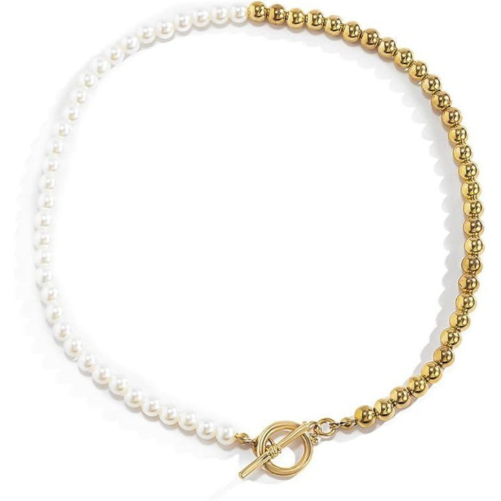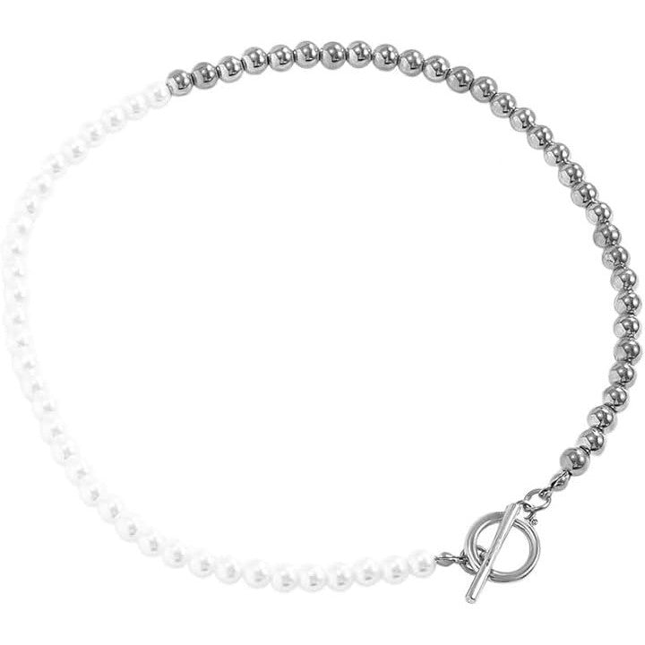 パールネックレス アシンメトリー OTフック マンテル メタルビーズ レディース おしゃれ 存在感あり