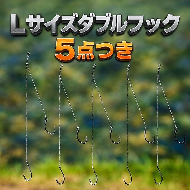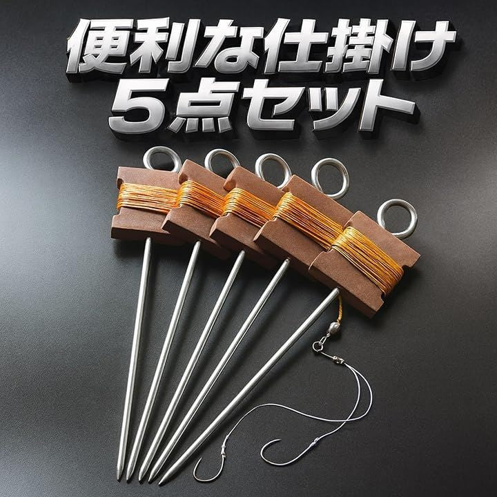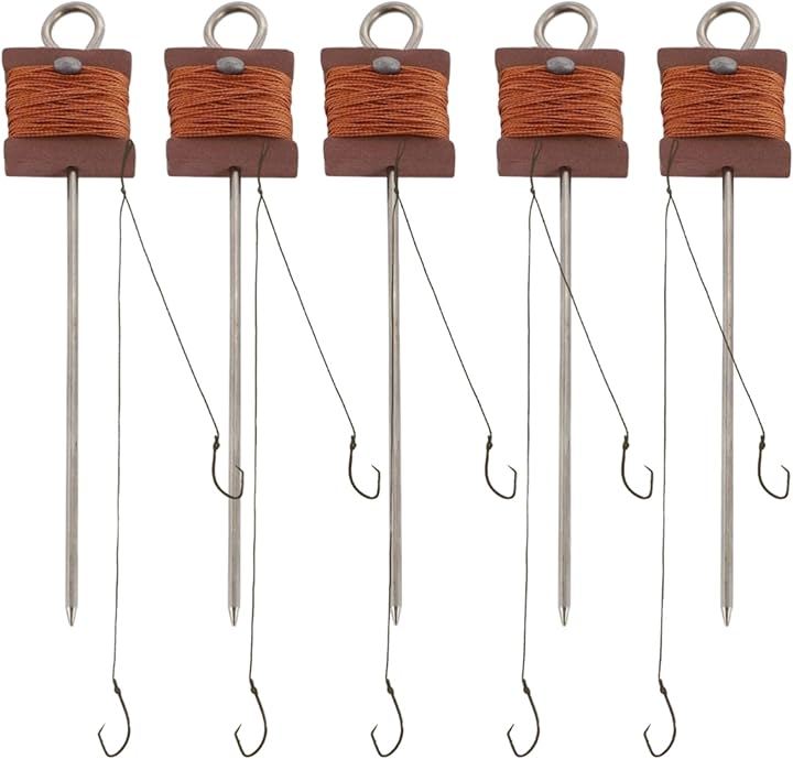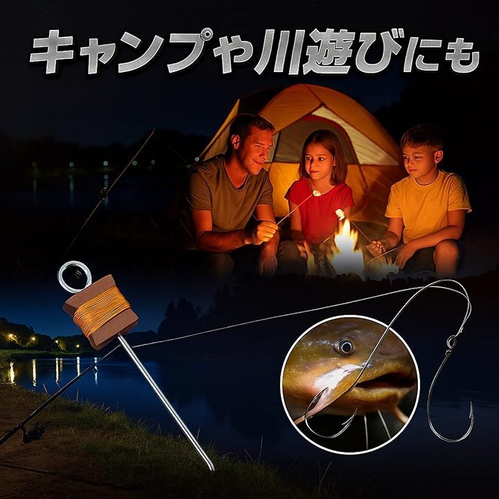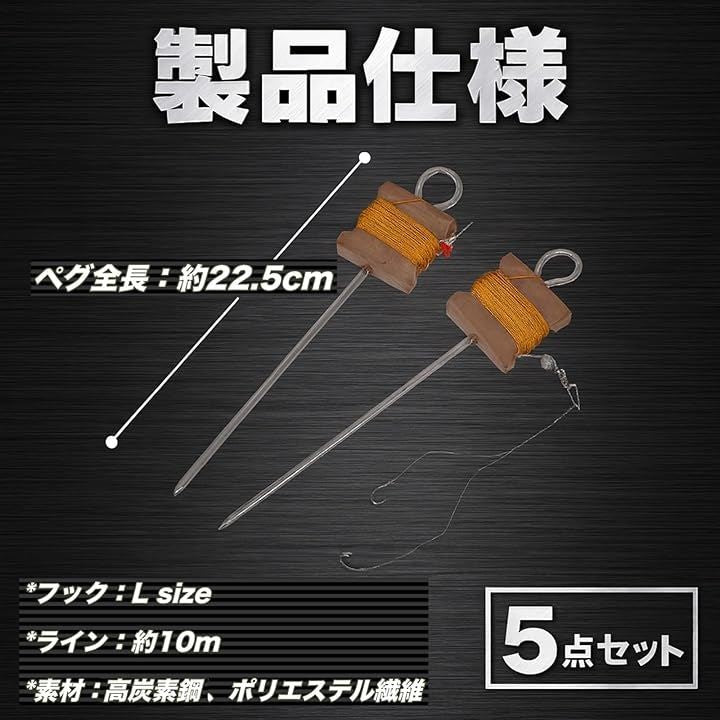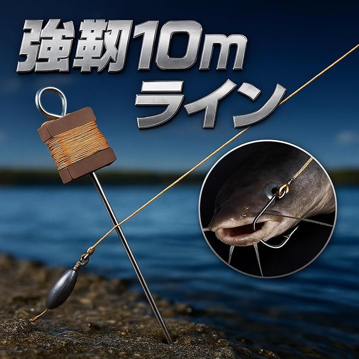 うなぎ釣り 置き針 仕掛け 5点セット ダブルフック+10mライン ペグ付き 大物対応 川釣り ナマズ 鯉 淡水魚 初心者でも簡単設置 アウトドア 夜釣り用