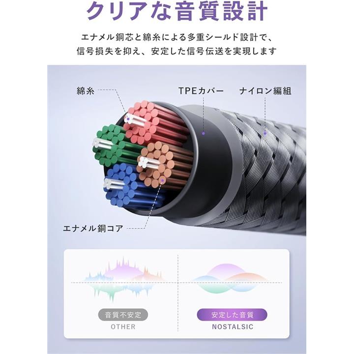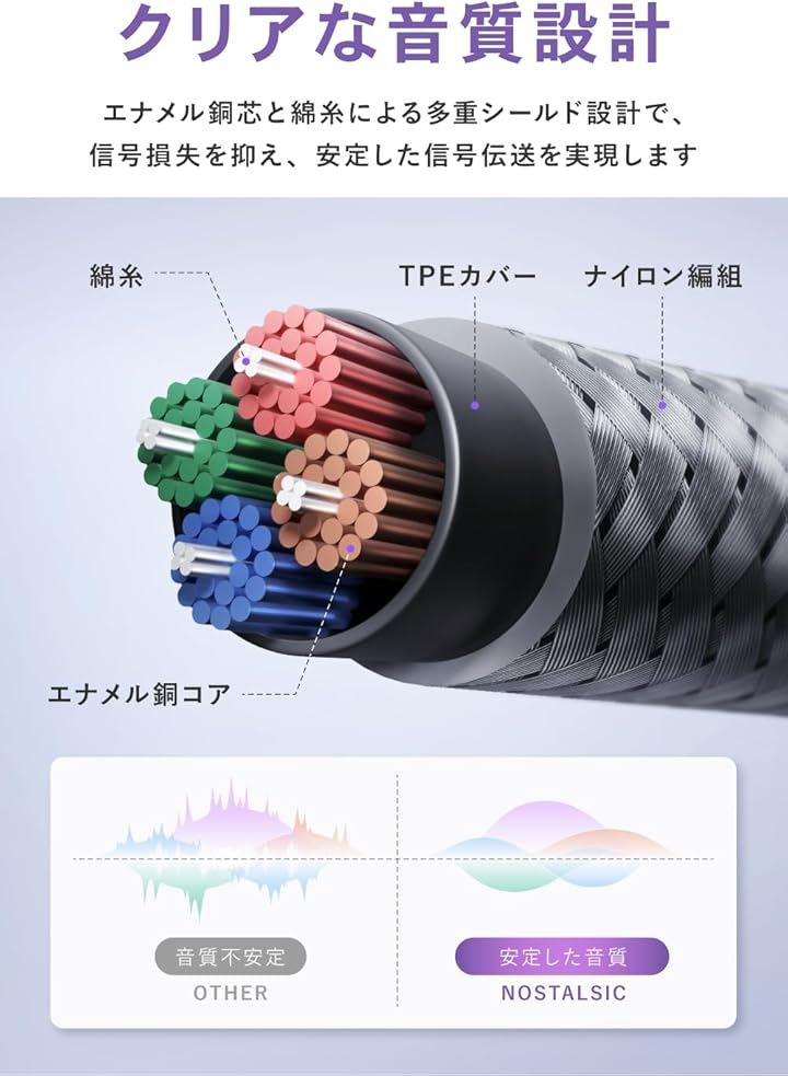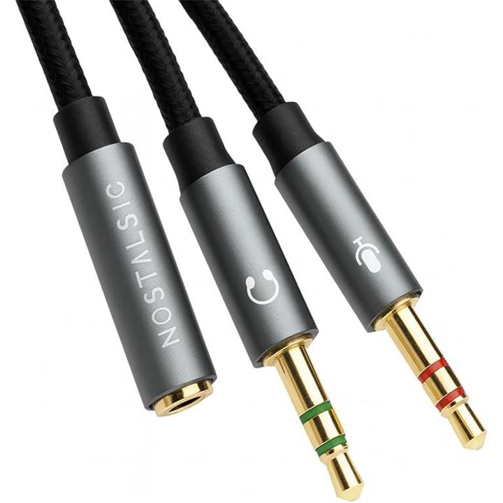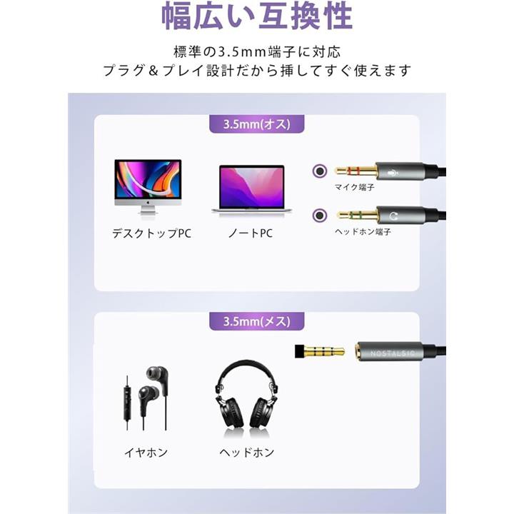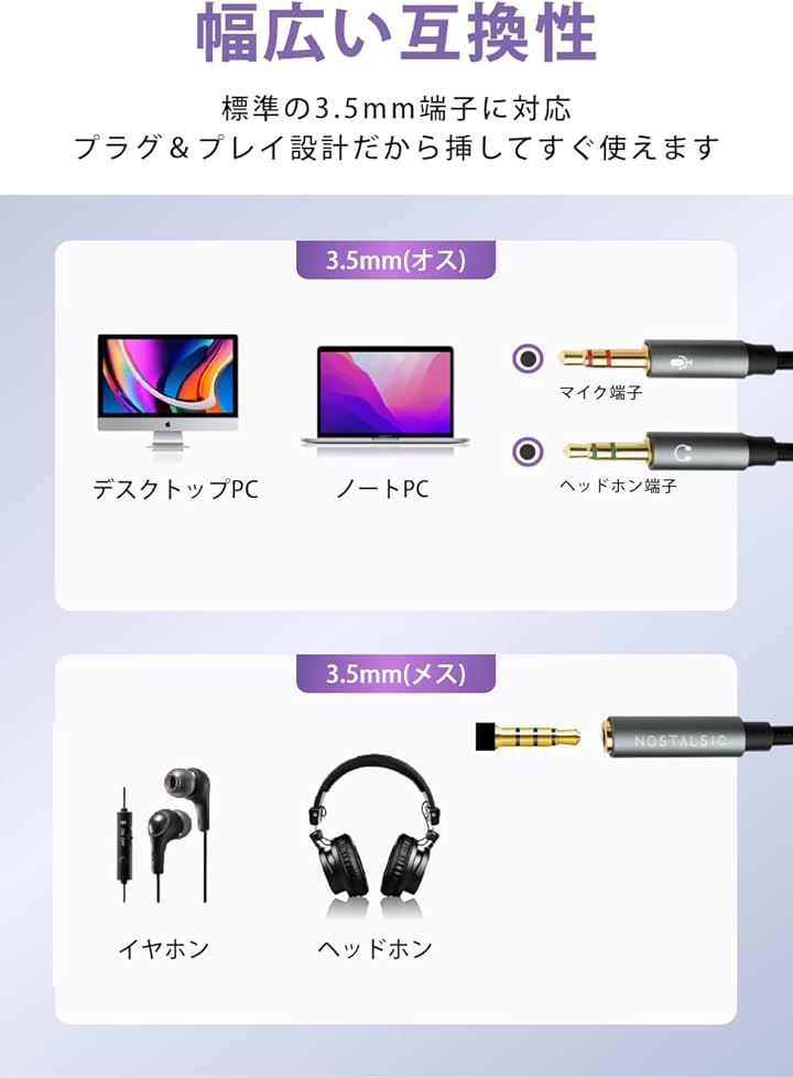 3.5mm 4極 3極 変換ケーブル ヘッドセット マイク 分岐 PC/ノートPC/ゲーム機対応 高耐久ナイロン編み 金メッキ端子 ノイズ低減 カラー識別端子 30cm