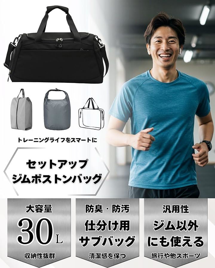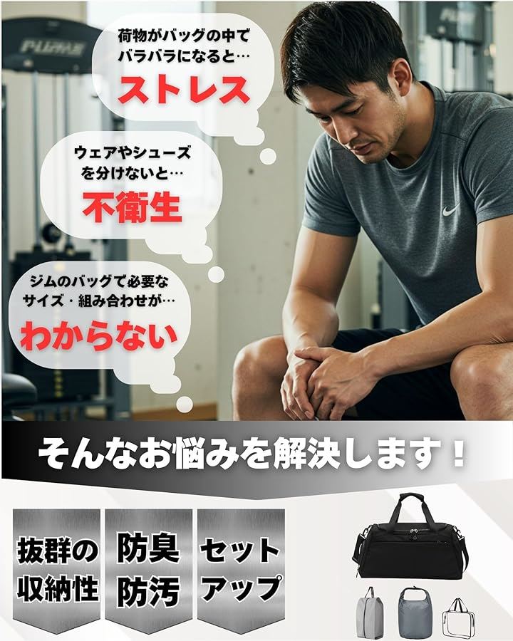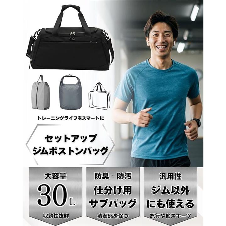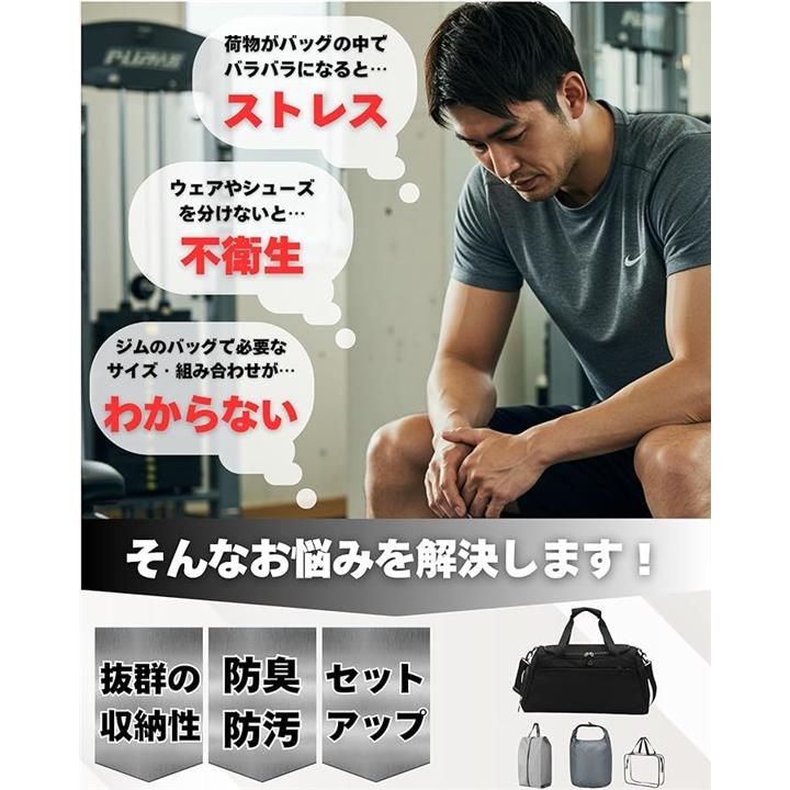 ジム ボストンバッグ メンズ サブバッグ3点セット付き 防臭防汚シューズ収納ポケット付き ダッフルバッグ トレーニング フィットネス スポーツ ランニング ゴルフ テニス バドミントン 卓球 旅行 出張