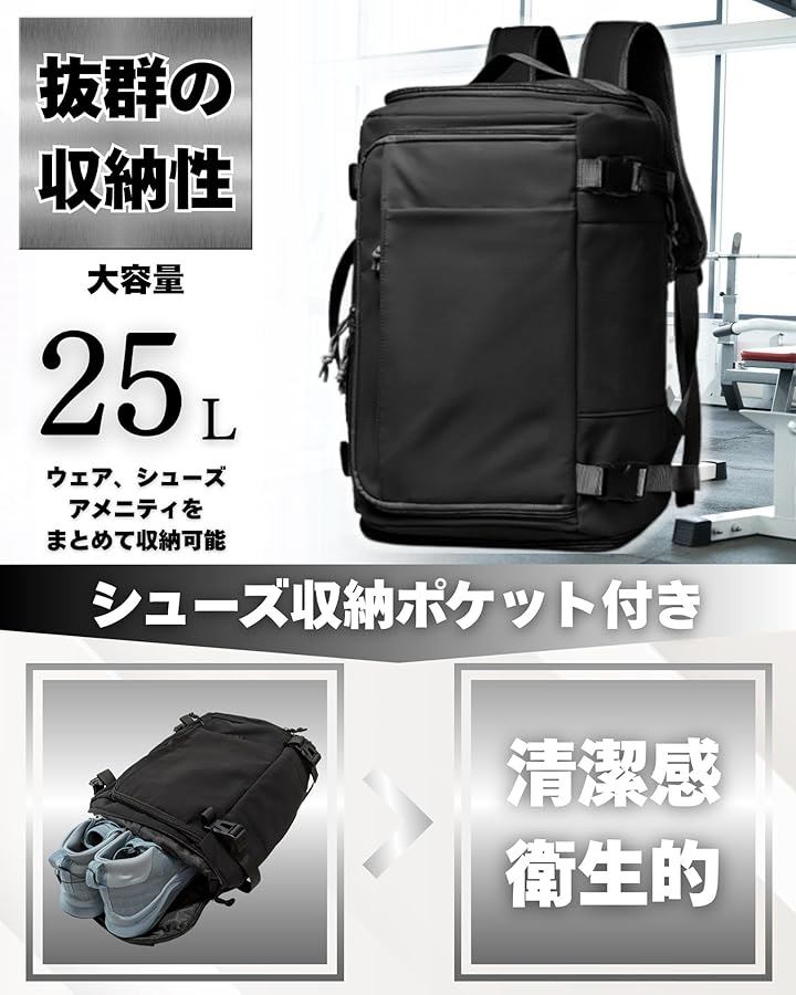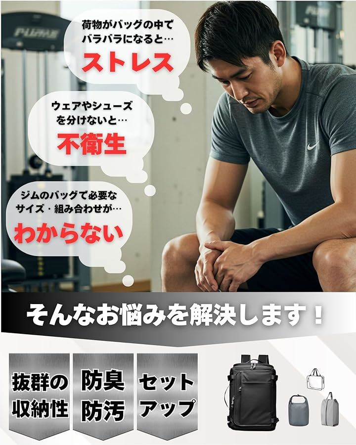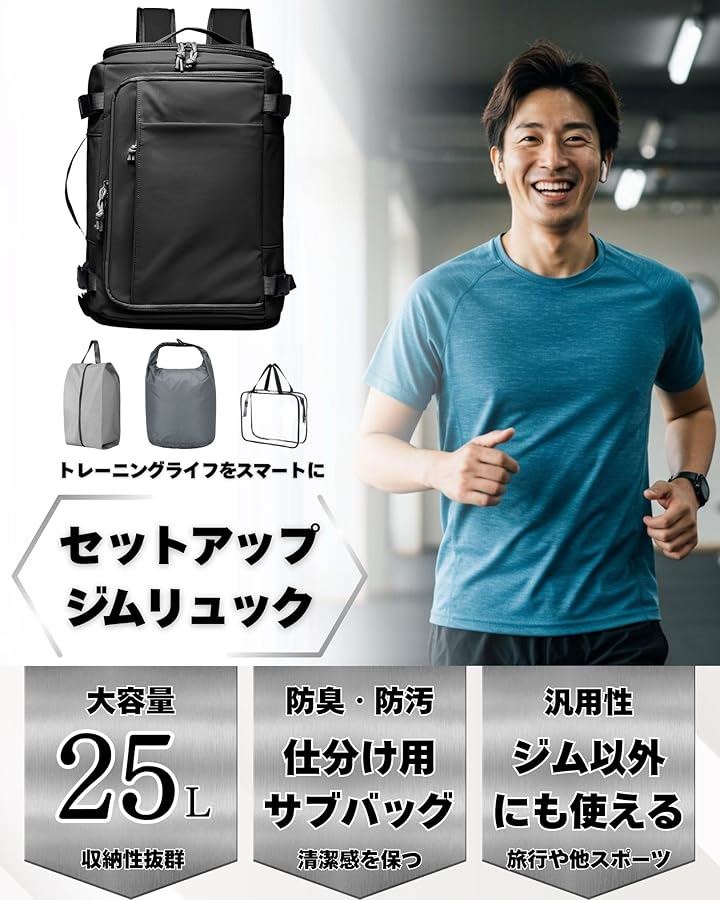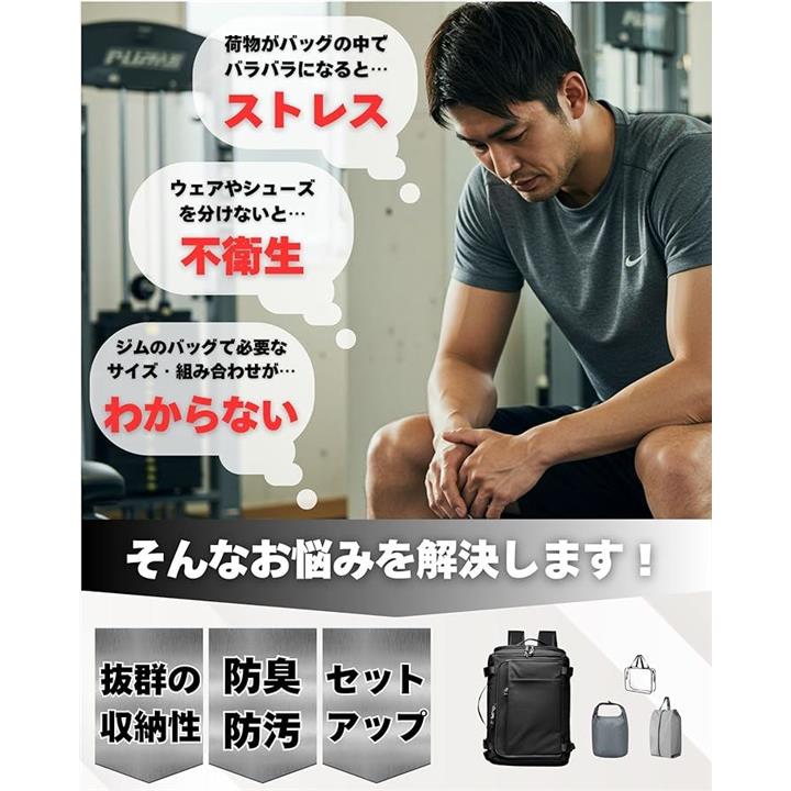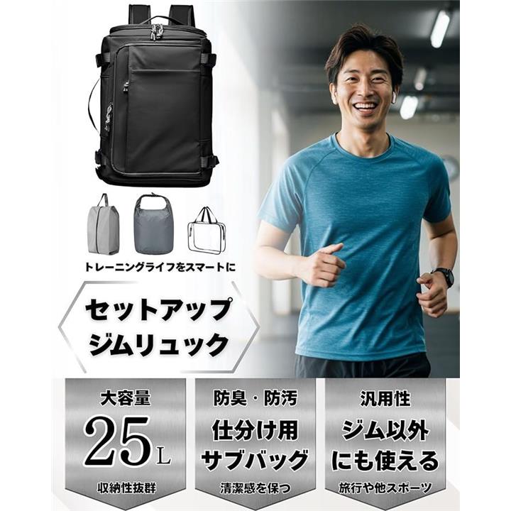 ジム リュック メンズ サブバッグ3点セット付き 防臭防汚シューズ収納ポケット付き バックパック トレーニング フィットネス スポーツ ランニング ゴルフ テニス バドミントン 卓球 旅行 出張 ALA-006