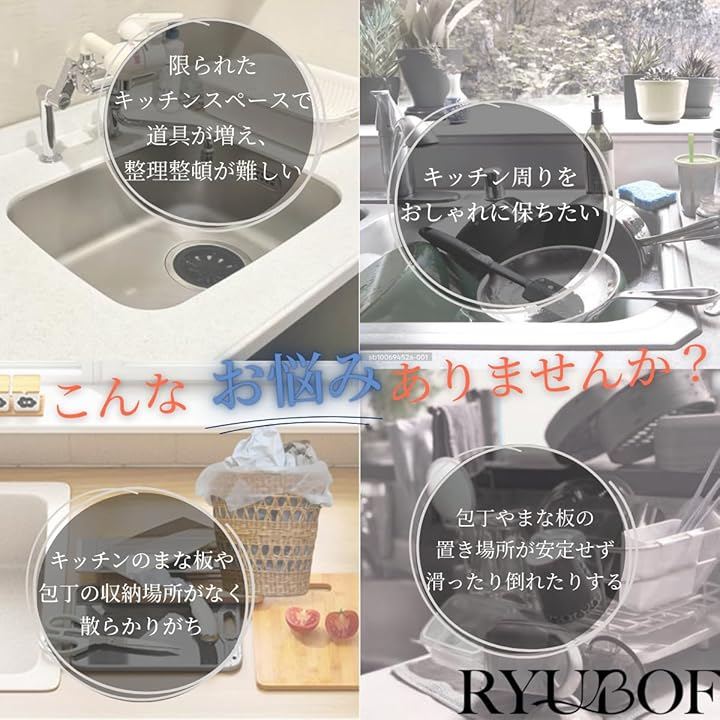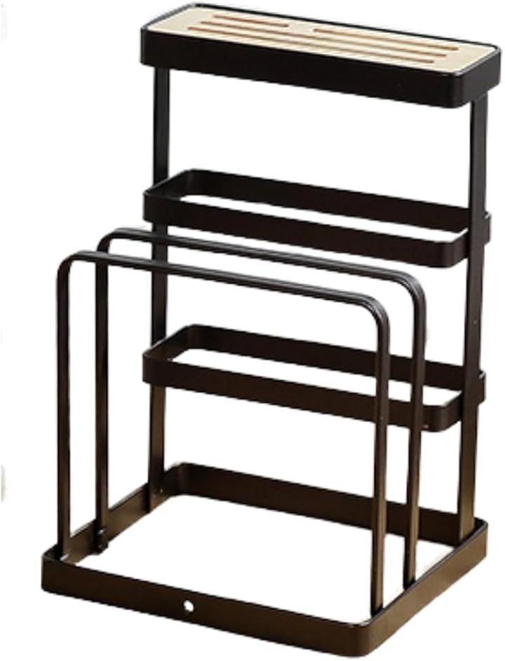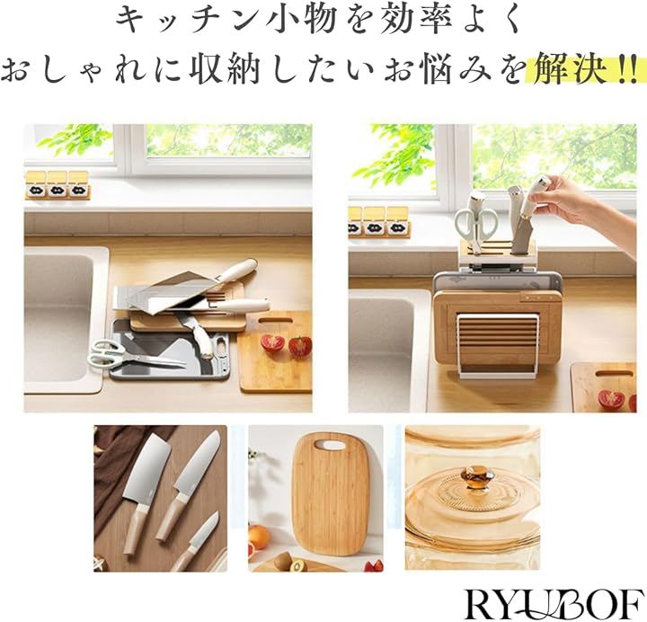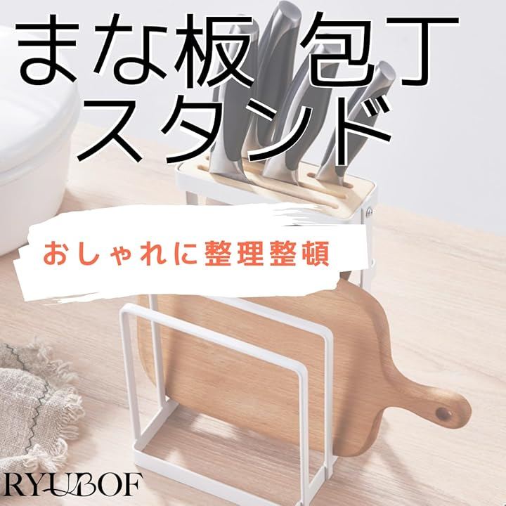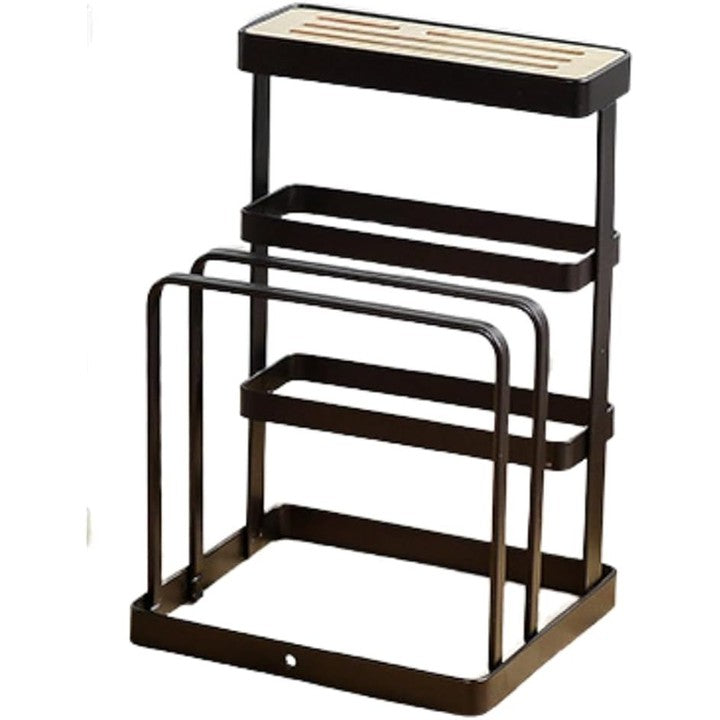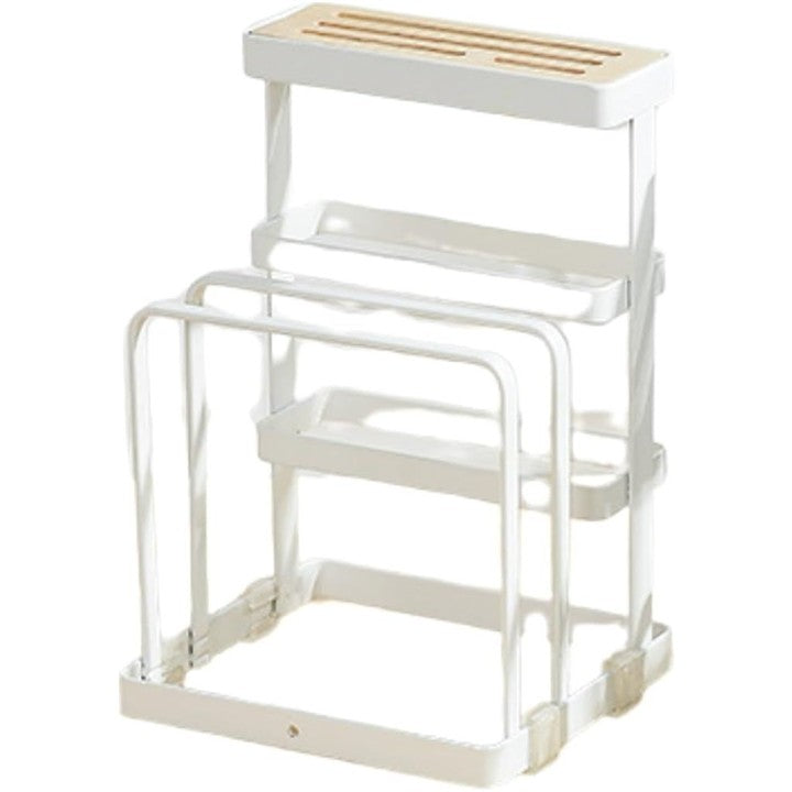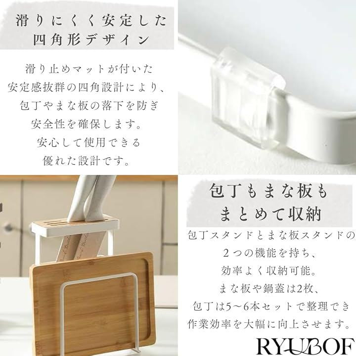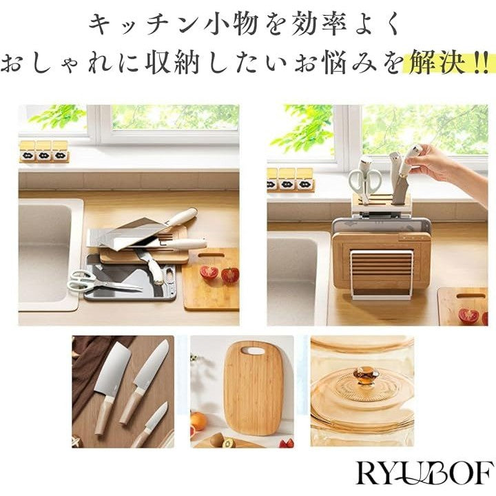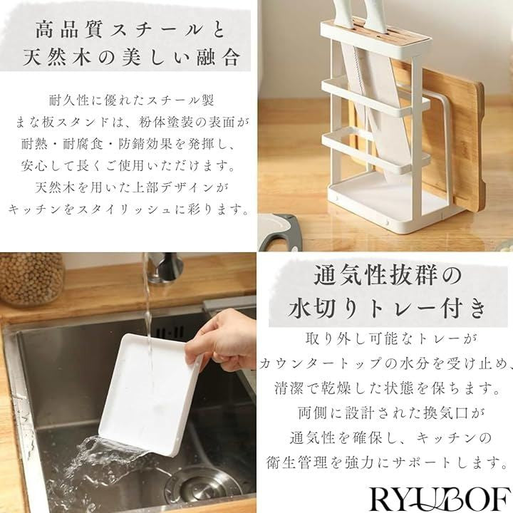 まな板スタンド 包丁スタンド 鉄製 スチール製 まな板置き 2枚収納 包丁5本収納 水切りトレー付き 滑り止め付き 多機能 キッチン収納 鍋ふた フライパン対応 通気性 おしゃれ 整理整頓