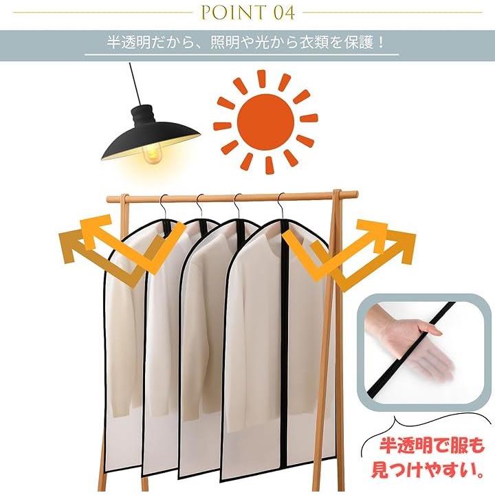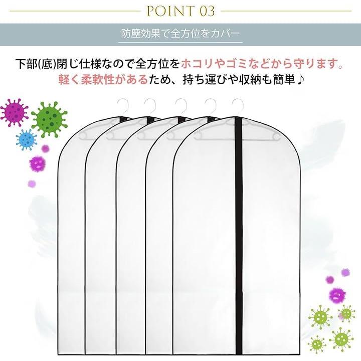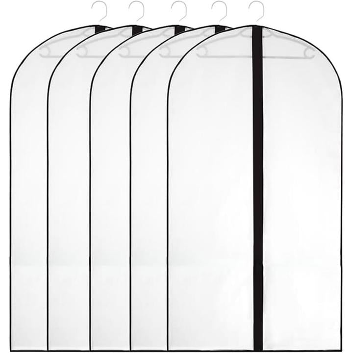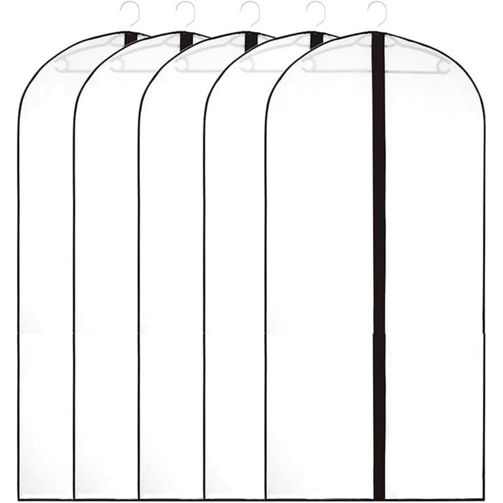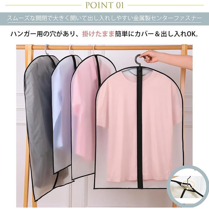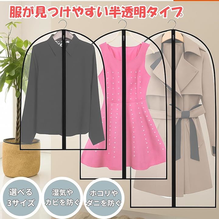 衣類カバー 半透明 ブラック縁 5枚セット 洋服カバー ファスナー式 防塵 防虫 防カビ 衣類収納