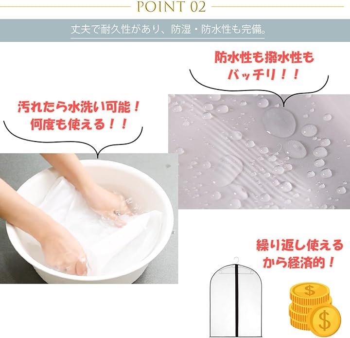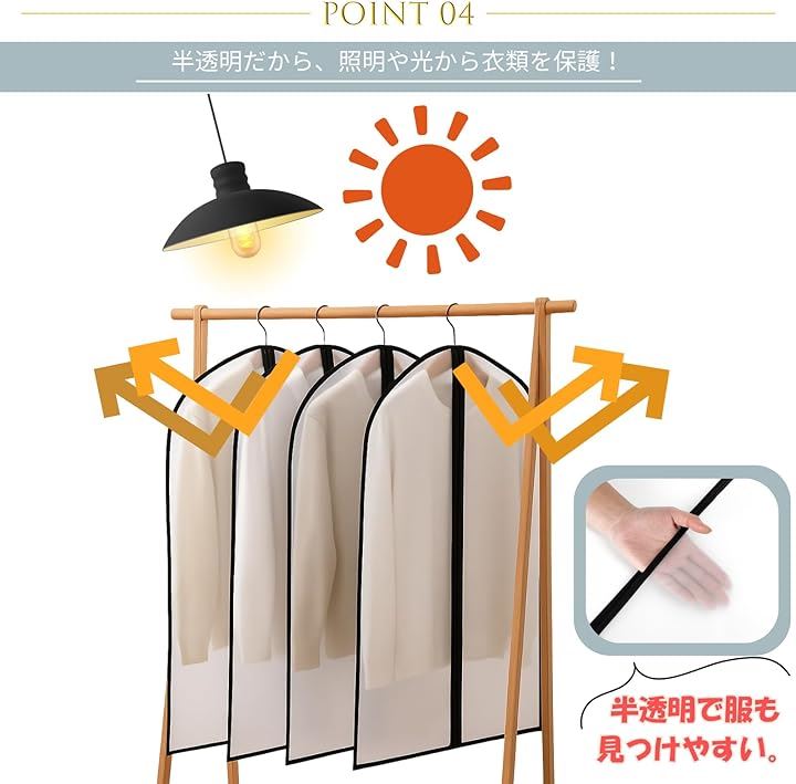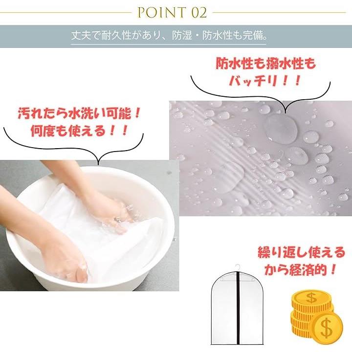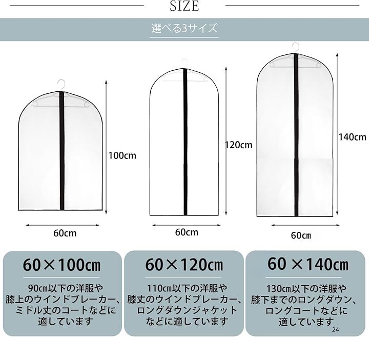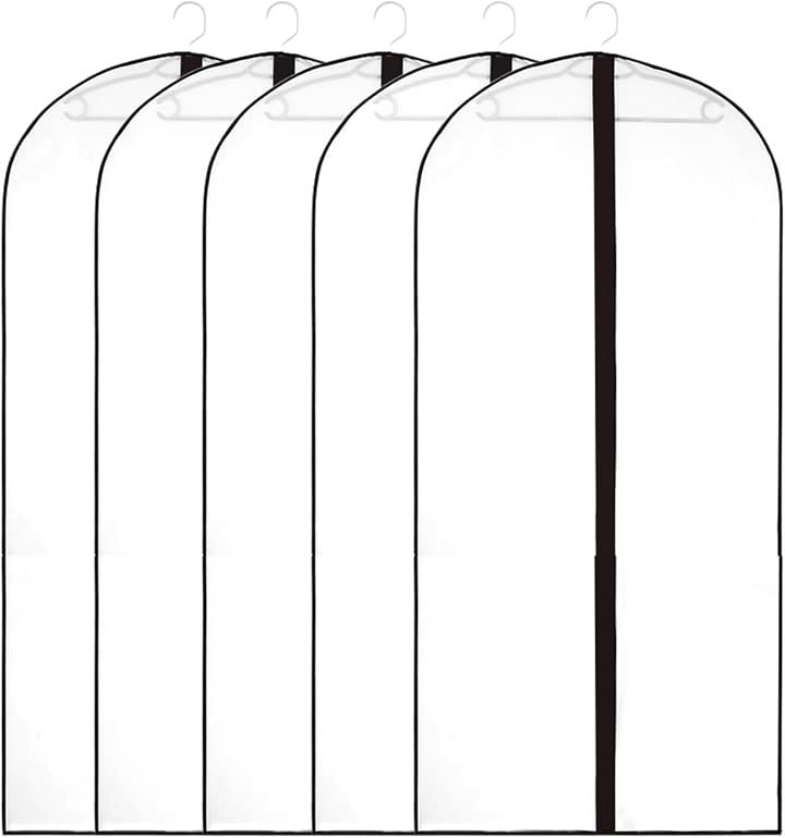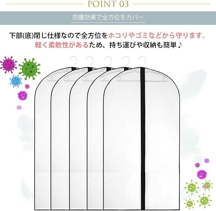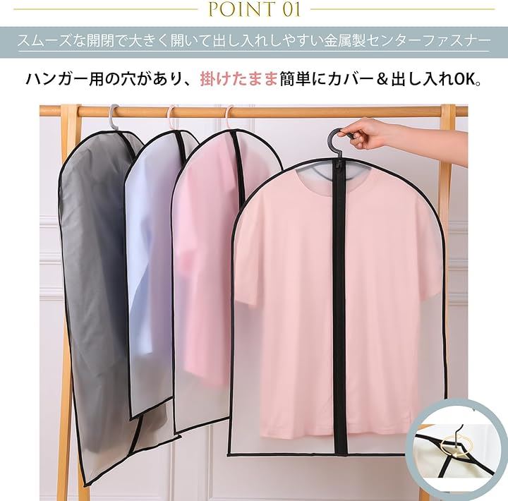 衣類カバー 半透明 ブラック縁 5枚セット 洋服カバー ファスナー式 防塵 防虫 防カビ 衣類収納