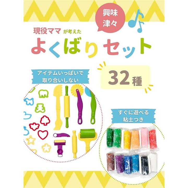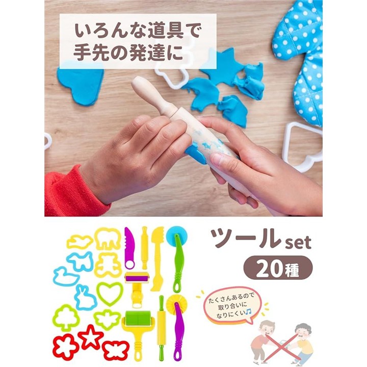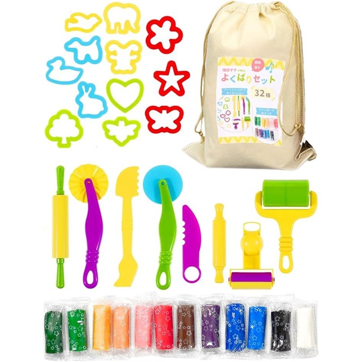 粘土 道具 幼児 こむぎねんど セット 32種 プレゼント ギフト 小麦粘土 ヘラ 型抜き 押し型 ツール カッター ローラー 知育玩具 おうち遊び 室内遊び モンテッソーリ